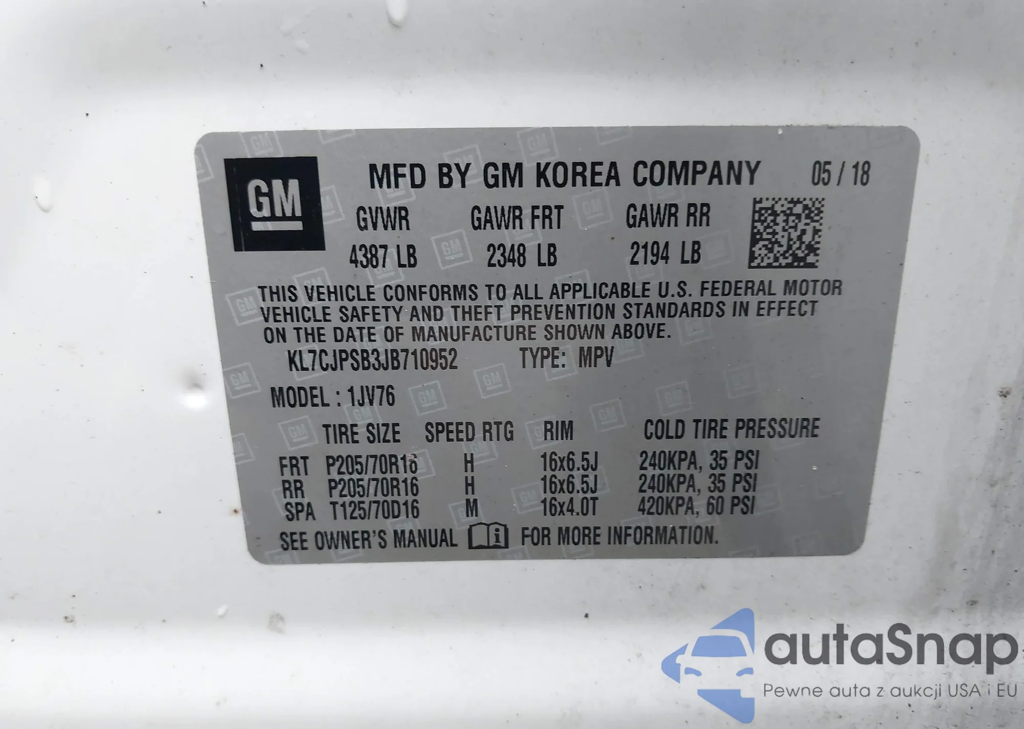 VIN: KL7CJPSB3JB710952