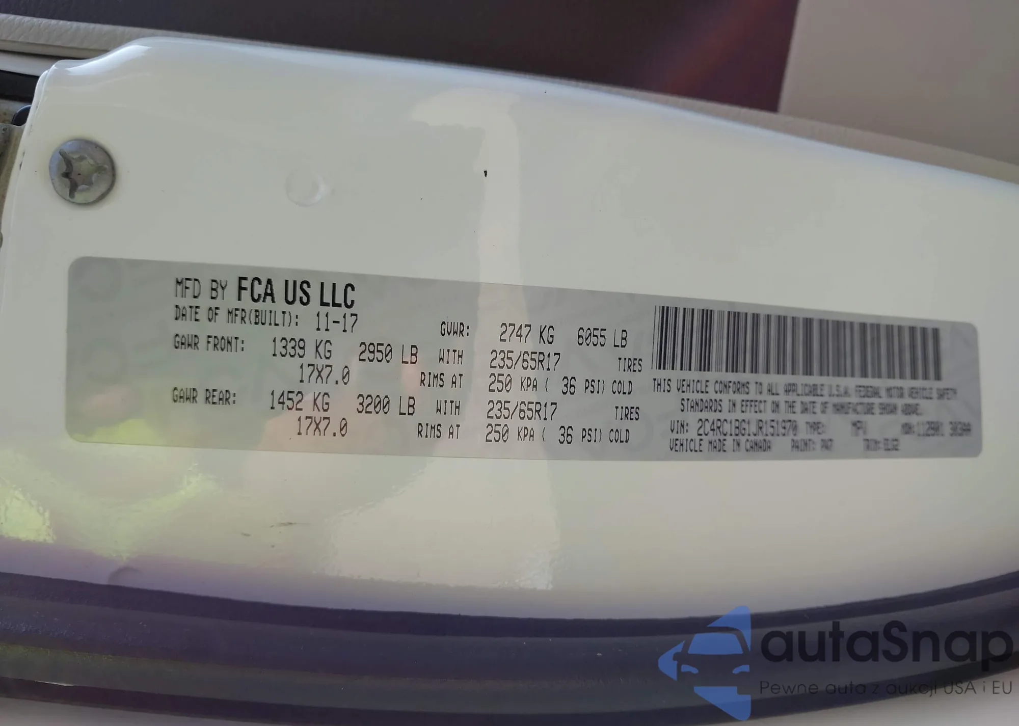 VIN: 2C4RC1BG1JR151970