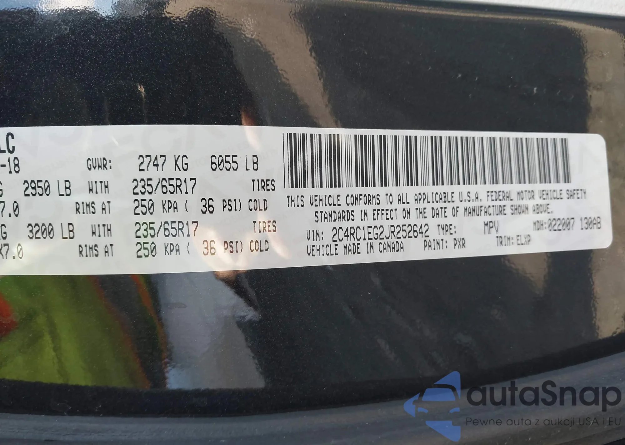 • VIN: 2C4RC1EG2JR252642