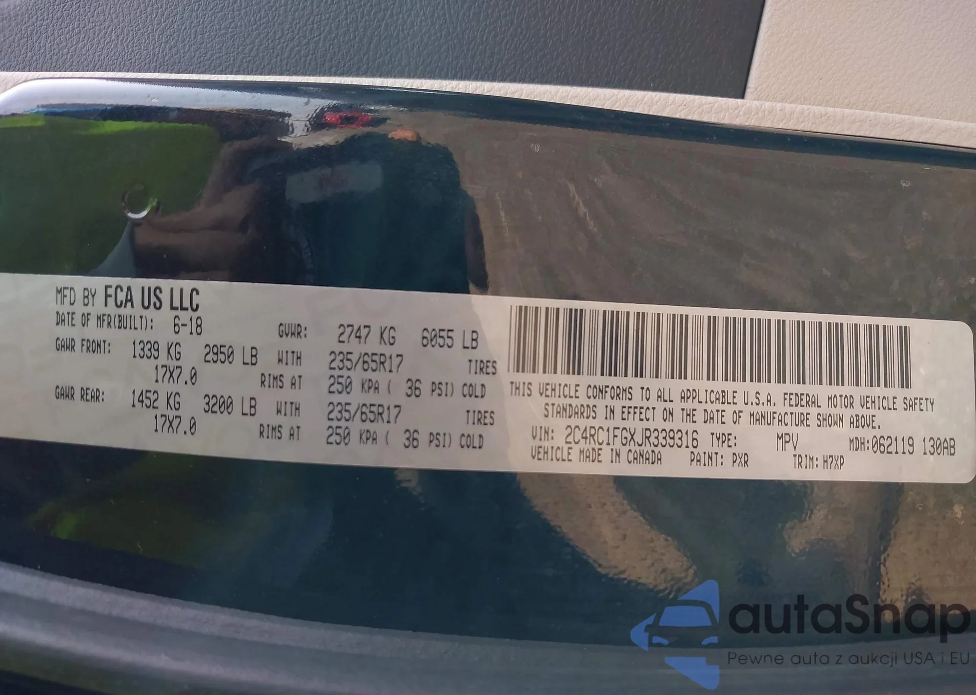 VIN: 2C4RC1FGXJR339316