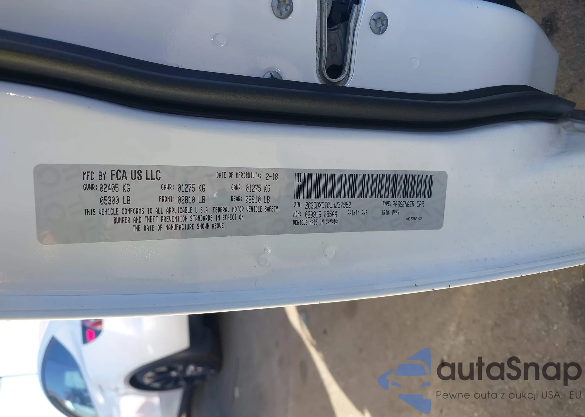 • VIN: 2C3CDXCT8JH237952