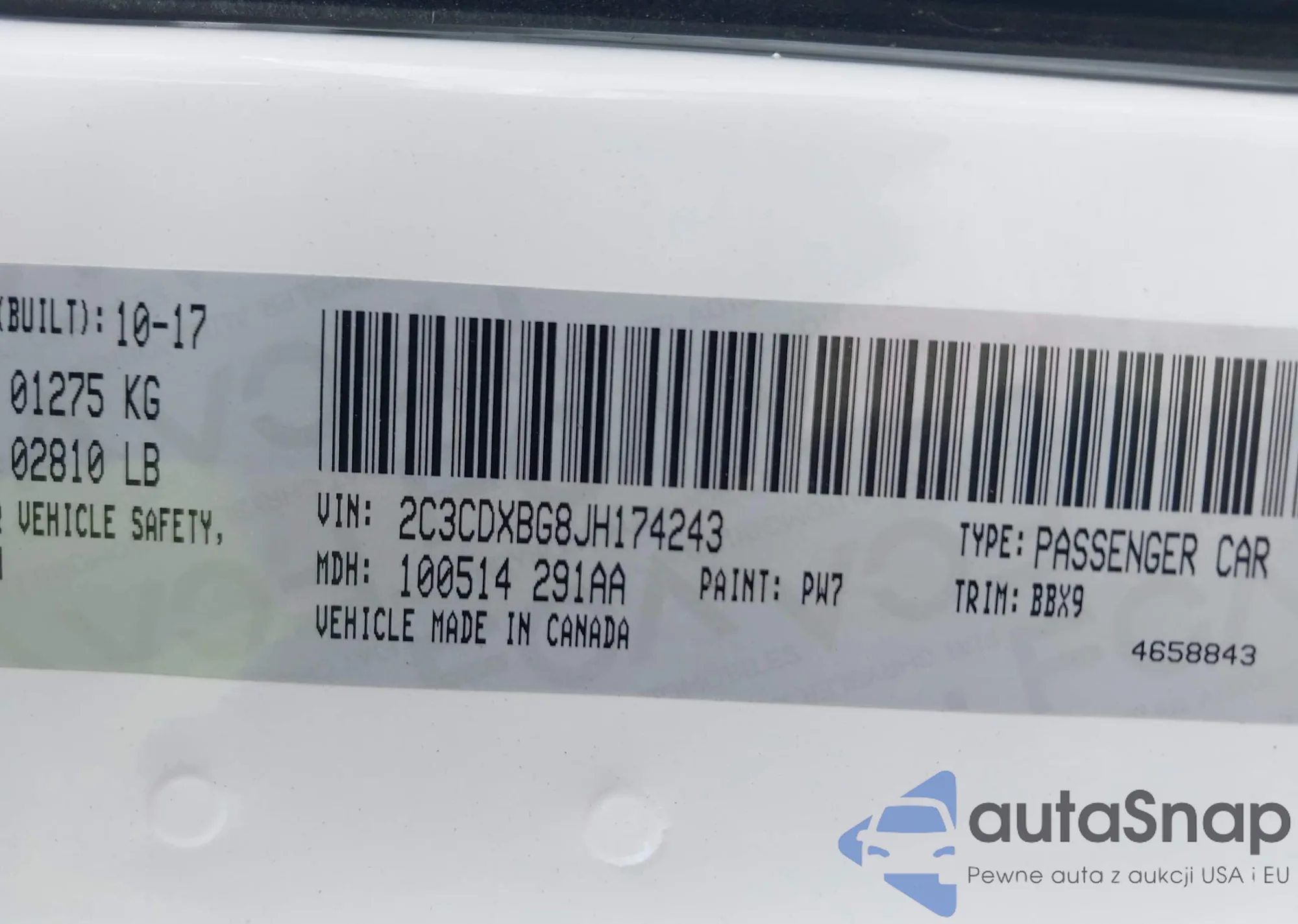 • VIN: 2C3CDXBG8JH174243
