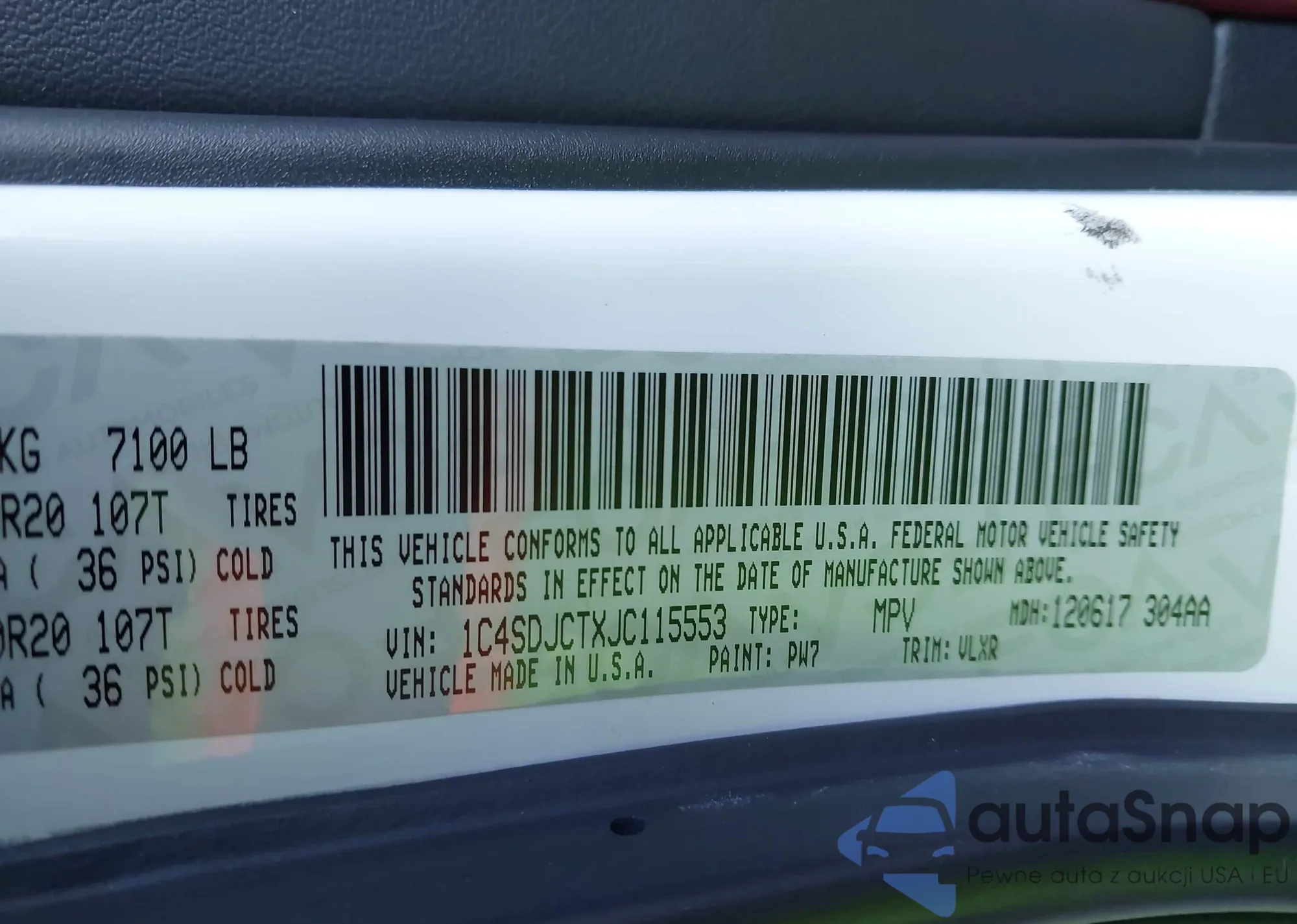 • VIN: 1C4SDJCTXJC115553