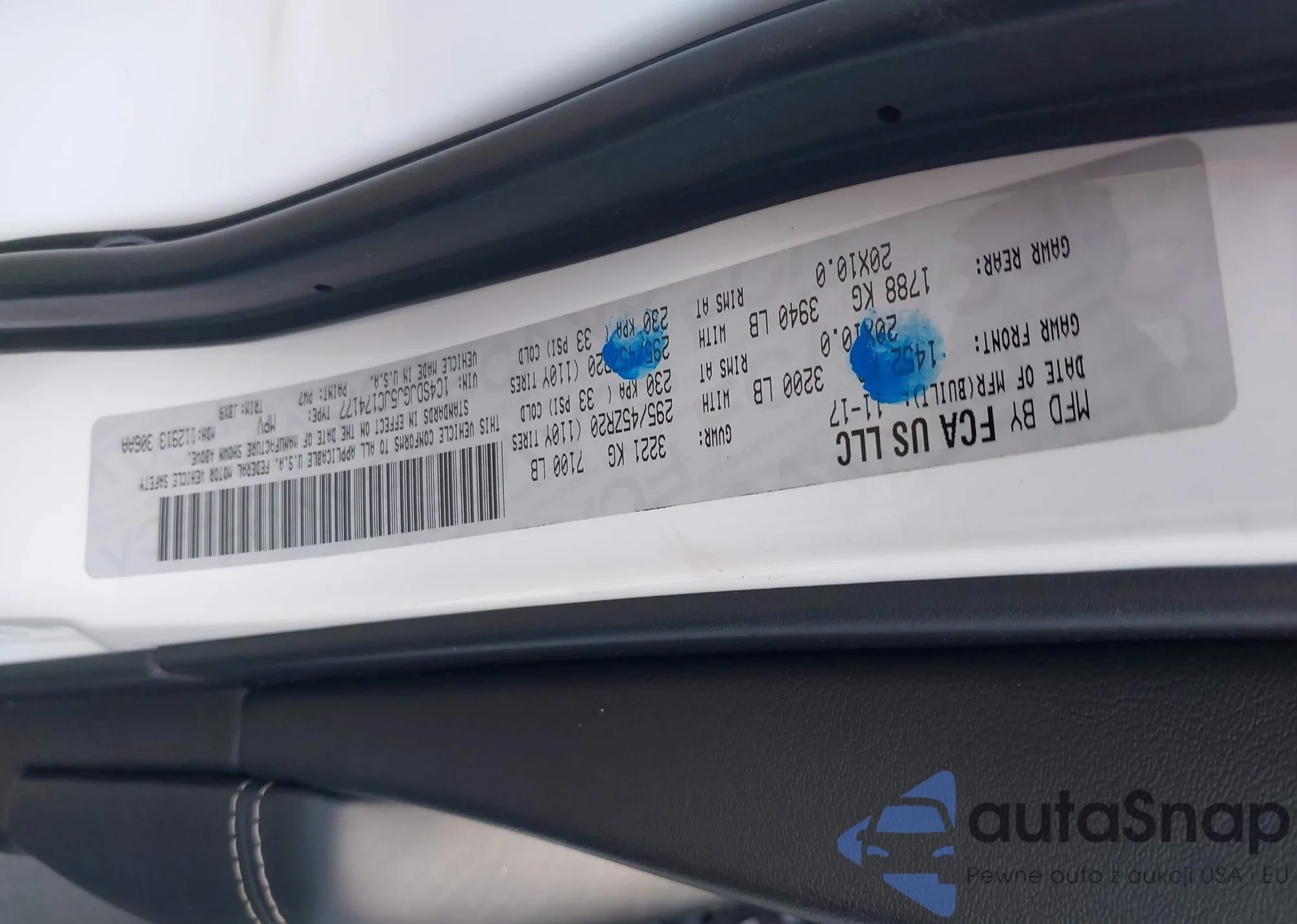 • VIN: 1C4SDJGJ5JC174177