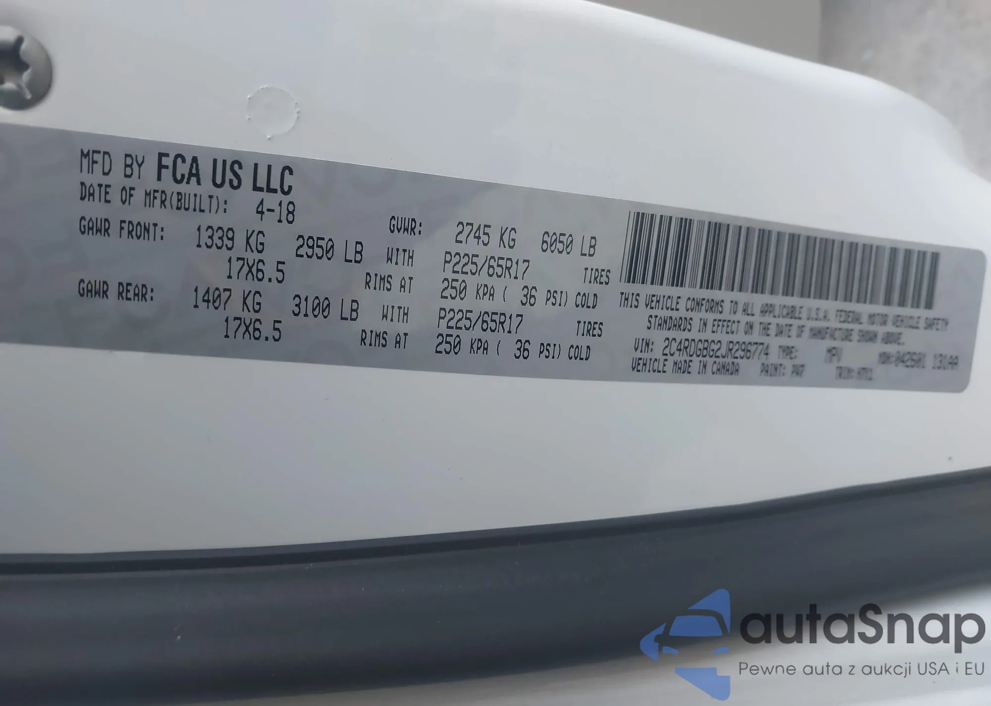 VIN: 2C4RDGBG2JR296774