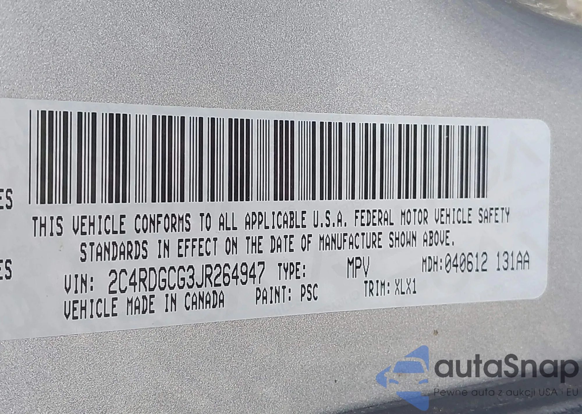 VIN: 2C4RDGCG3JR264947