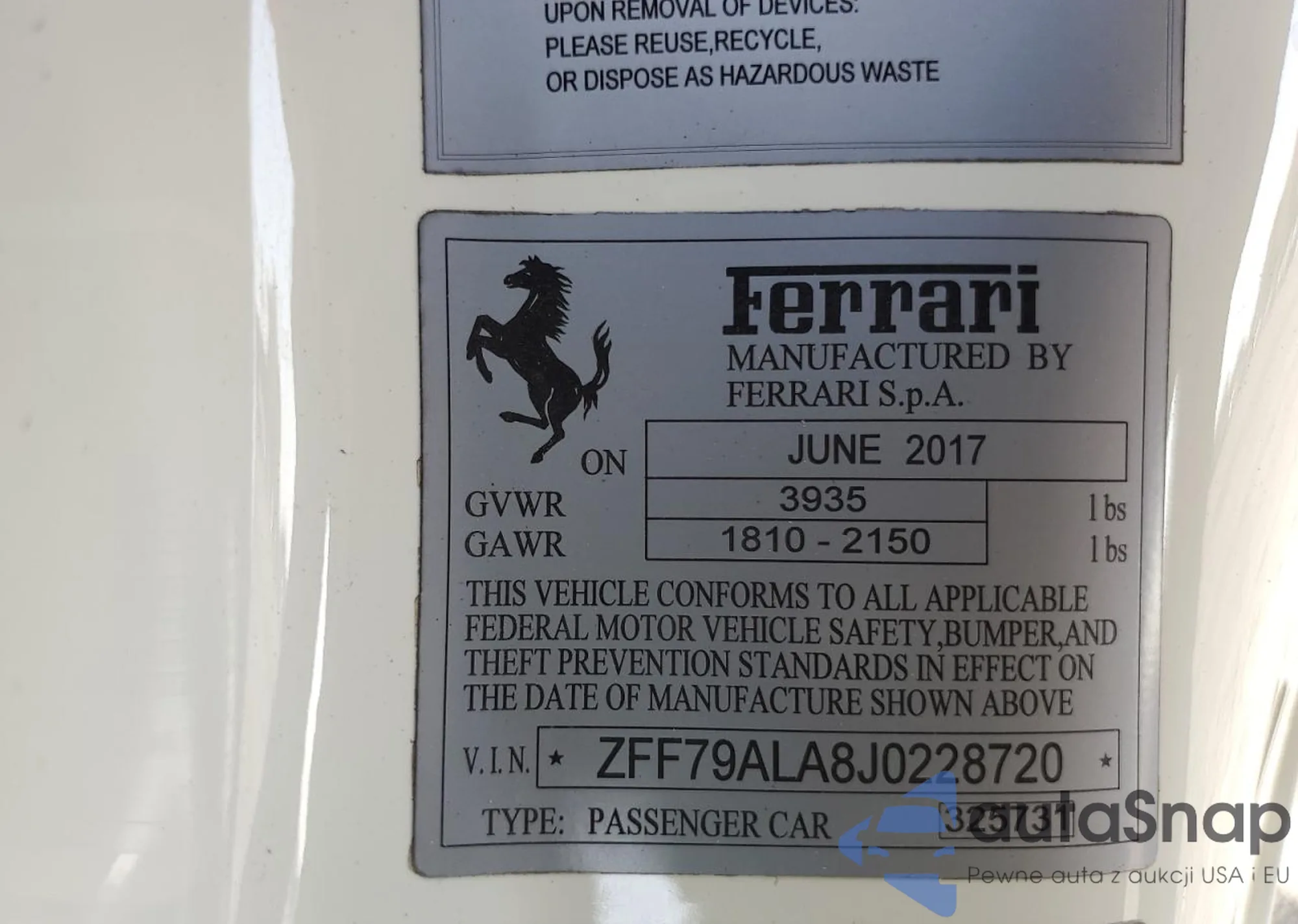 VIN: ZFF79ALA8J0228720