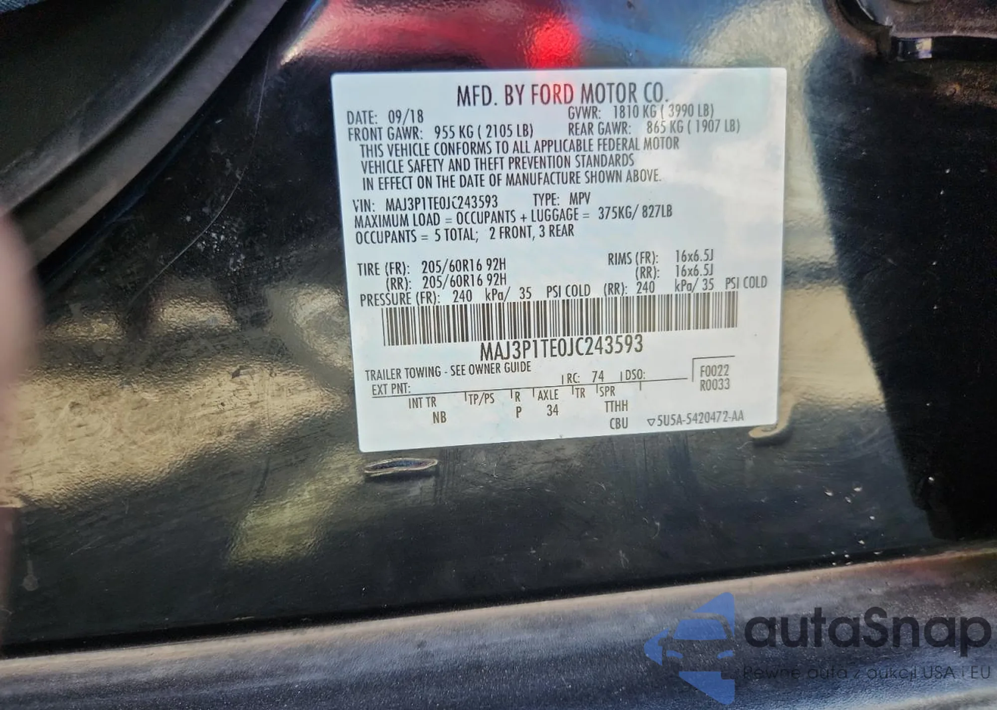 VIN: MAJ3P1TE0JC243593