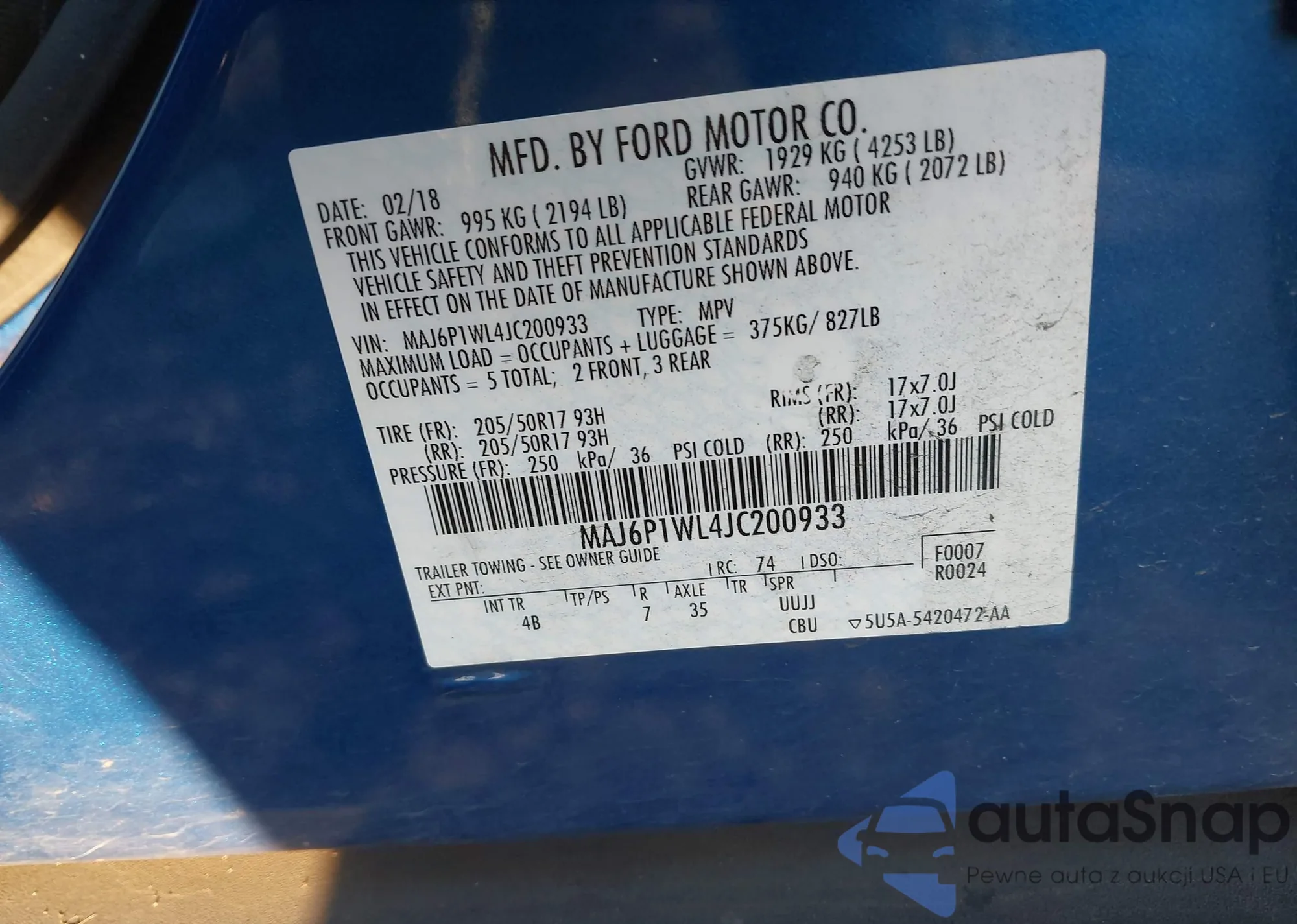Автомобиль Ford EcoSport 2018 (VIN MAJ6P1WL4JC200933) ранее не участвовал в торгах. Документы чистые, пробег соответствует или ниже среднего по рынку. Продаётся страховой компанией — рекомендуем покупку. Доставка в порт займет около 6–8 недель.