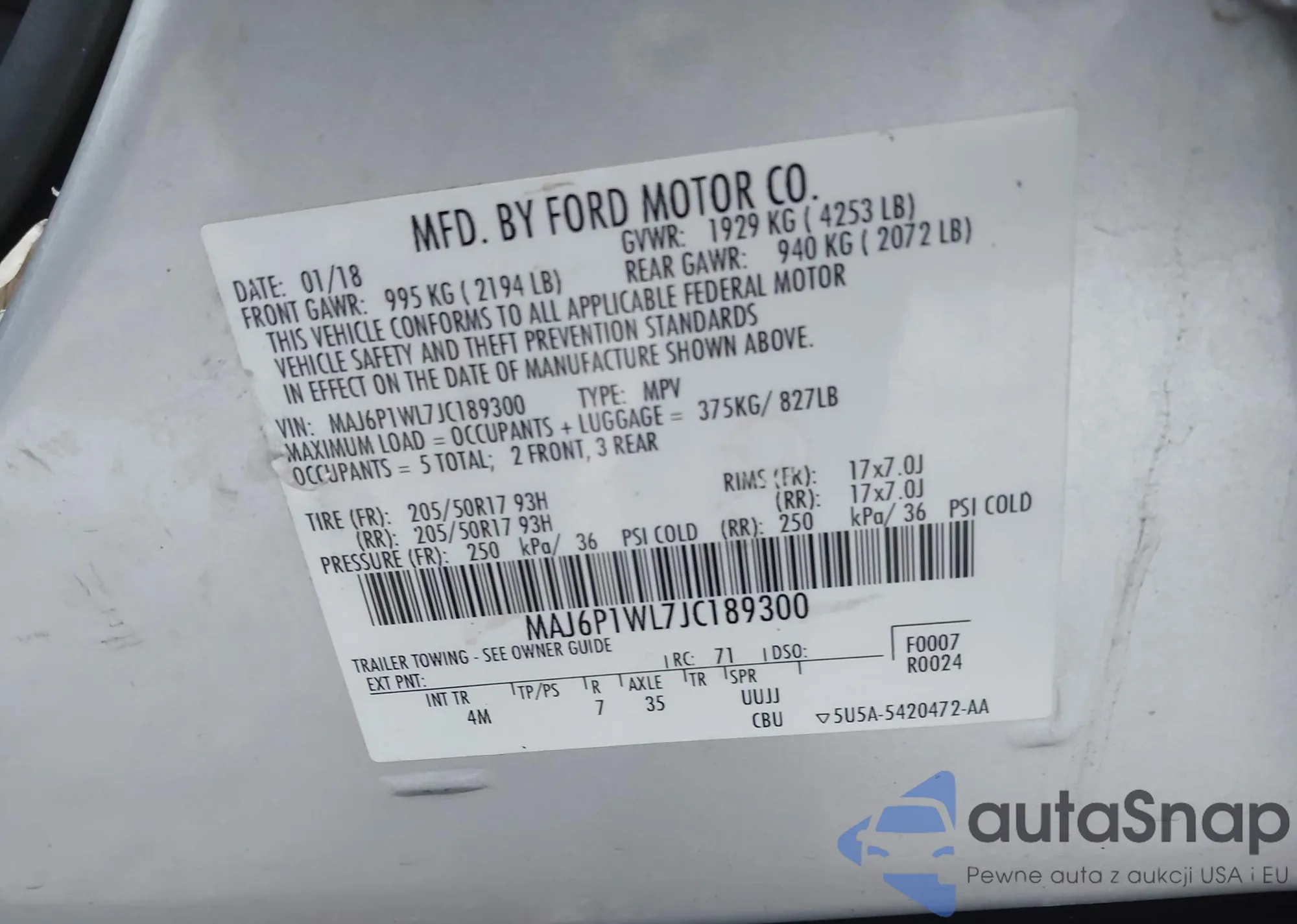 • VIN: MAJ6P1WL7JC189300