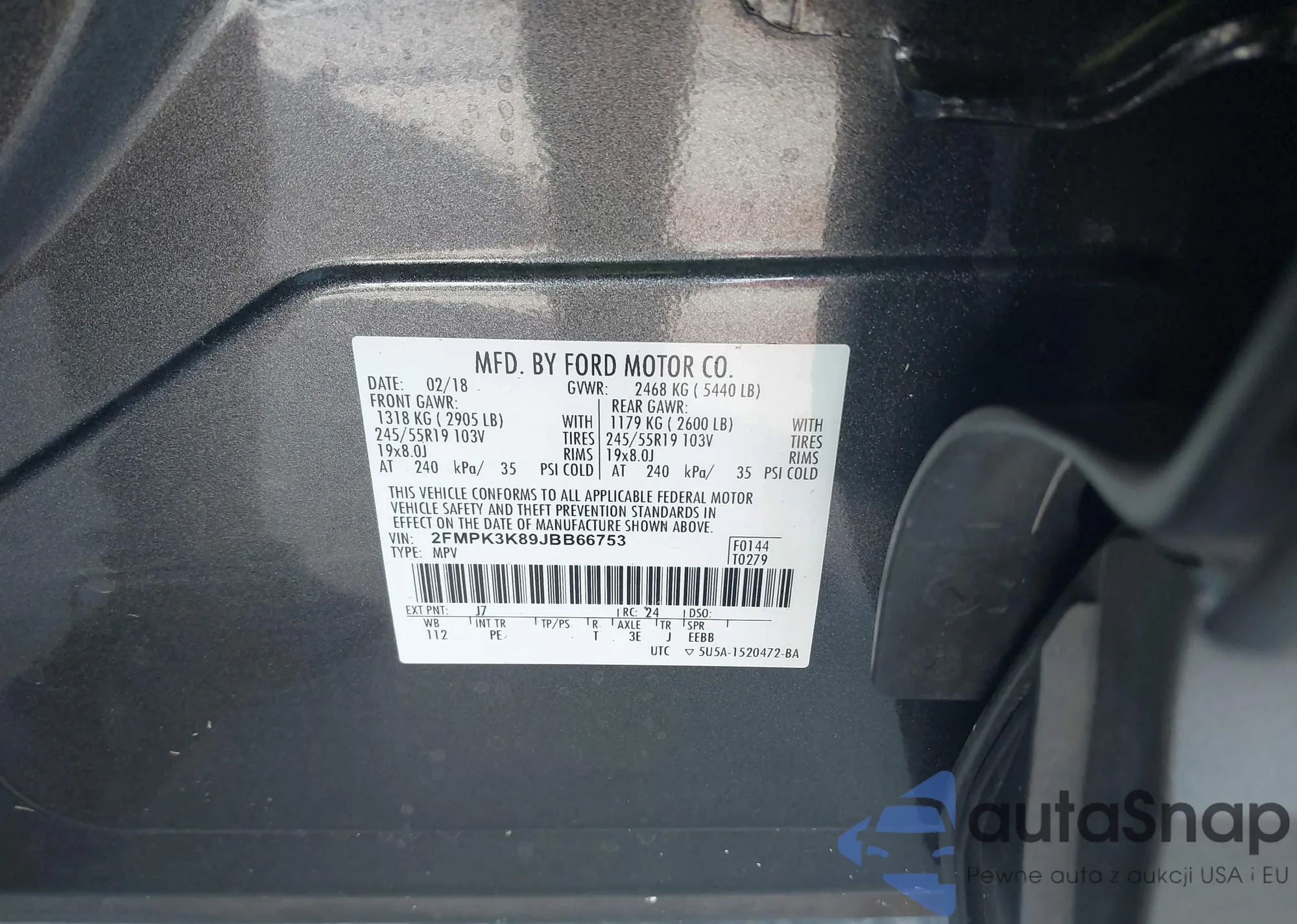 • VIN: 2FMPK3K89JBB66753