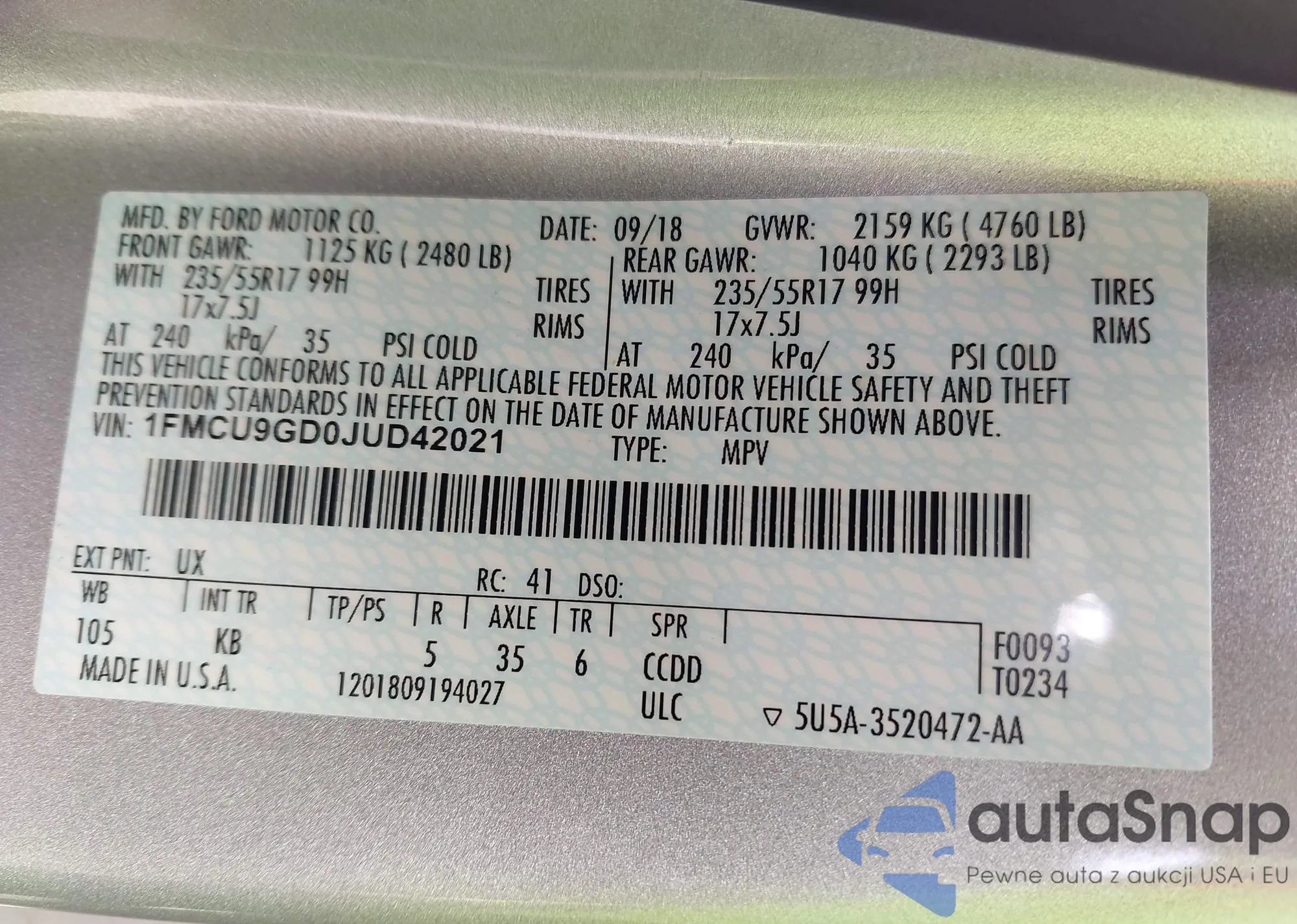 VIN: 1FMCU9GD0JUD42021