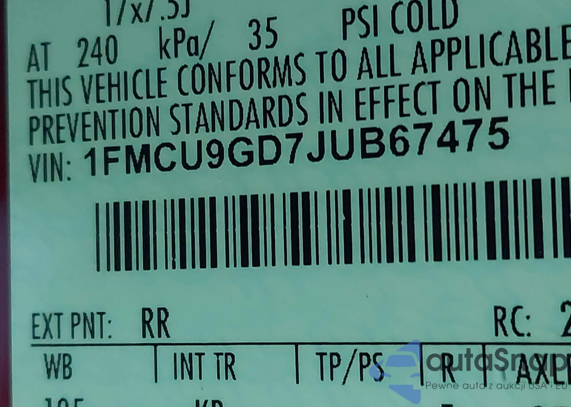 VIN: 1FMCU9GD7J4B67475