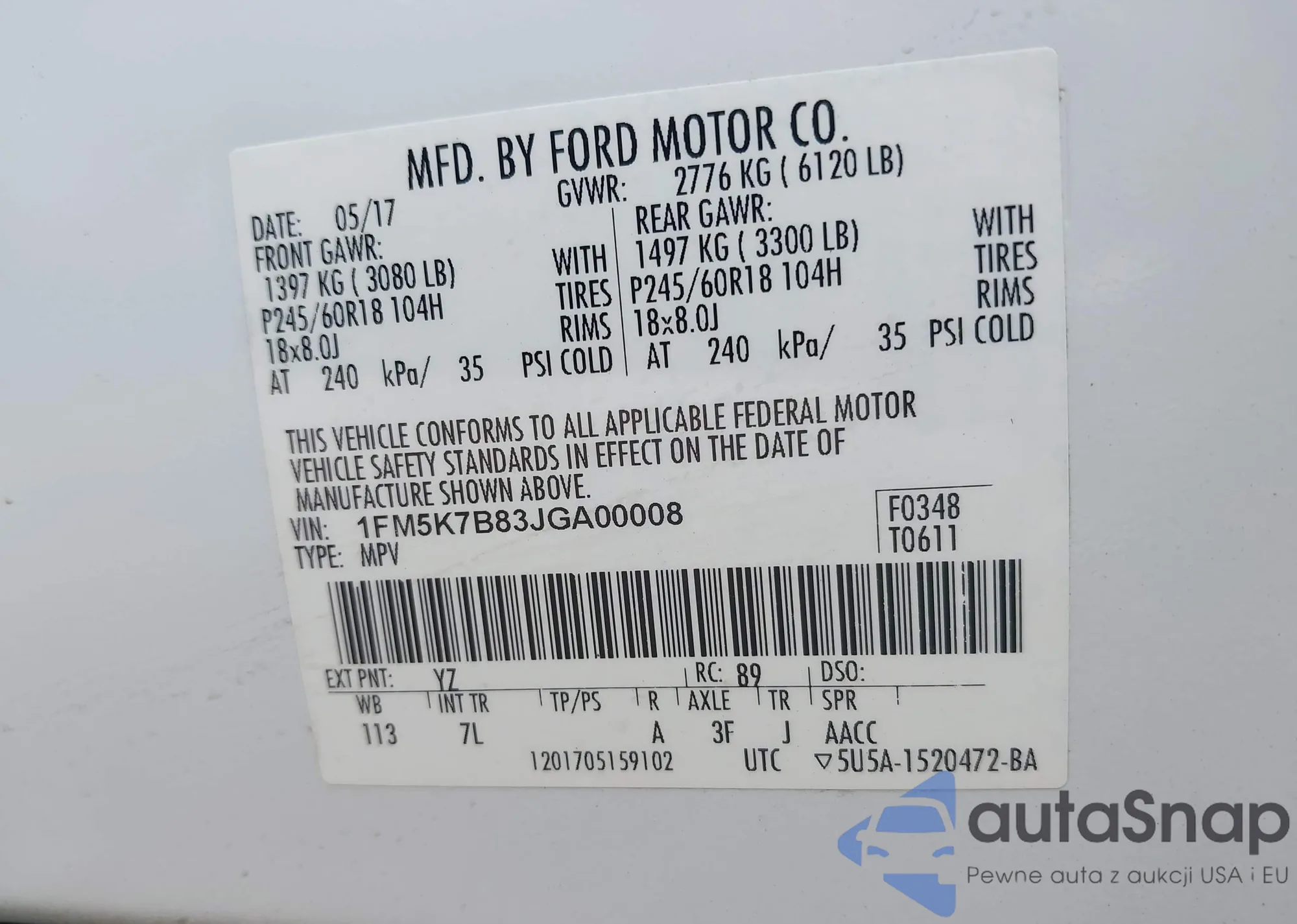 Автомобиль Ford Explorer 2018 (VIN 1FM5K7B83JGA00008) ранее не участвовал в торгах. Документы чистые, пробег соответствует или ниже среднего по рынку. Продаётся страховой компанией — рекомендуем покупку. Доставка в порт займет около 6–8 недель.