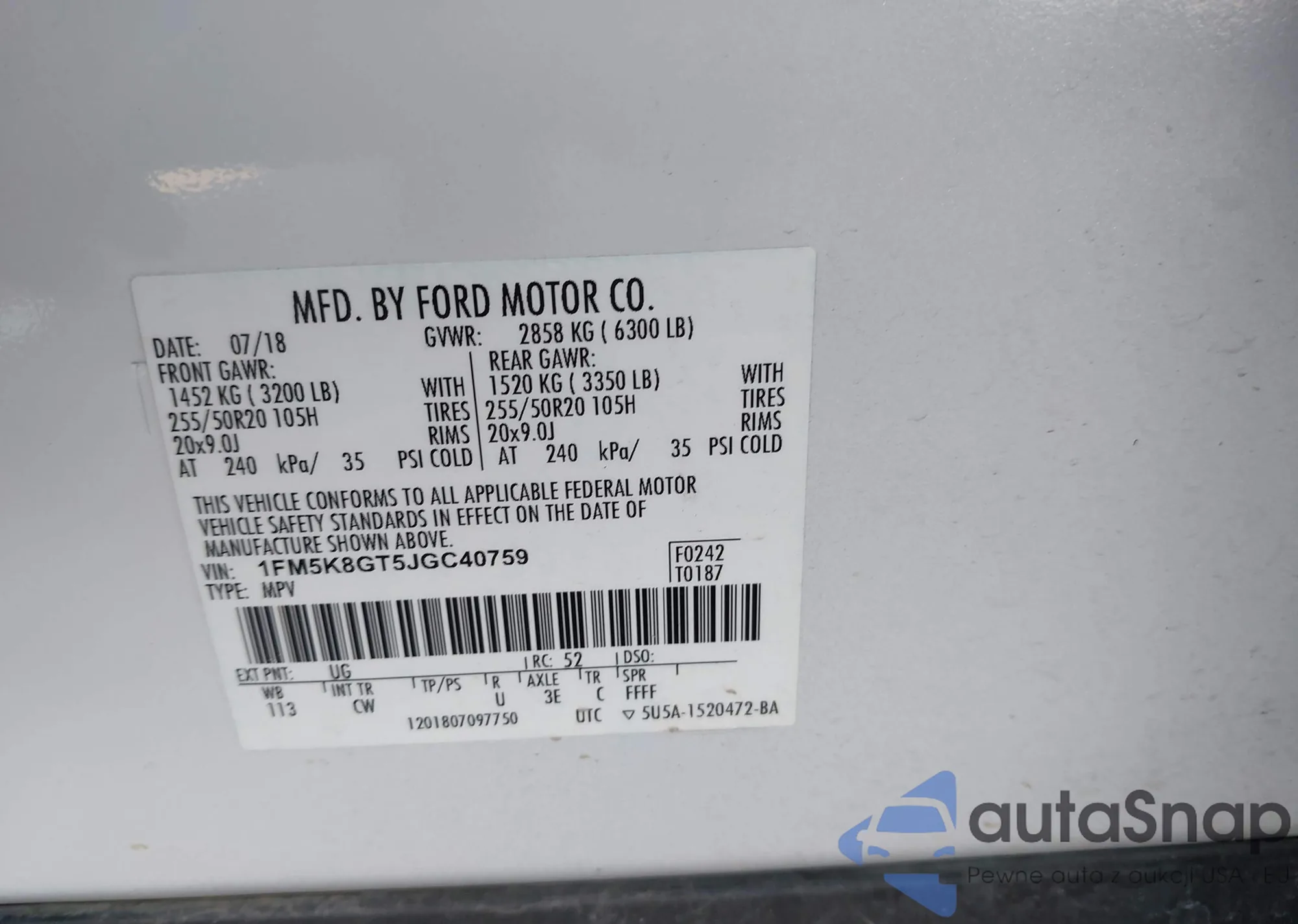 VIN: 1FM5K8GT5JGC40759
