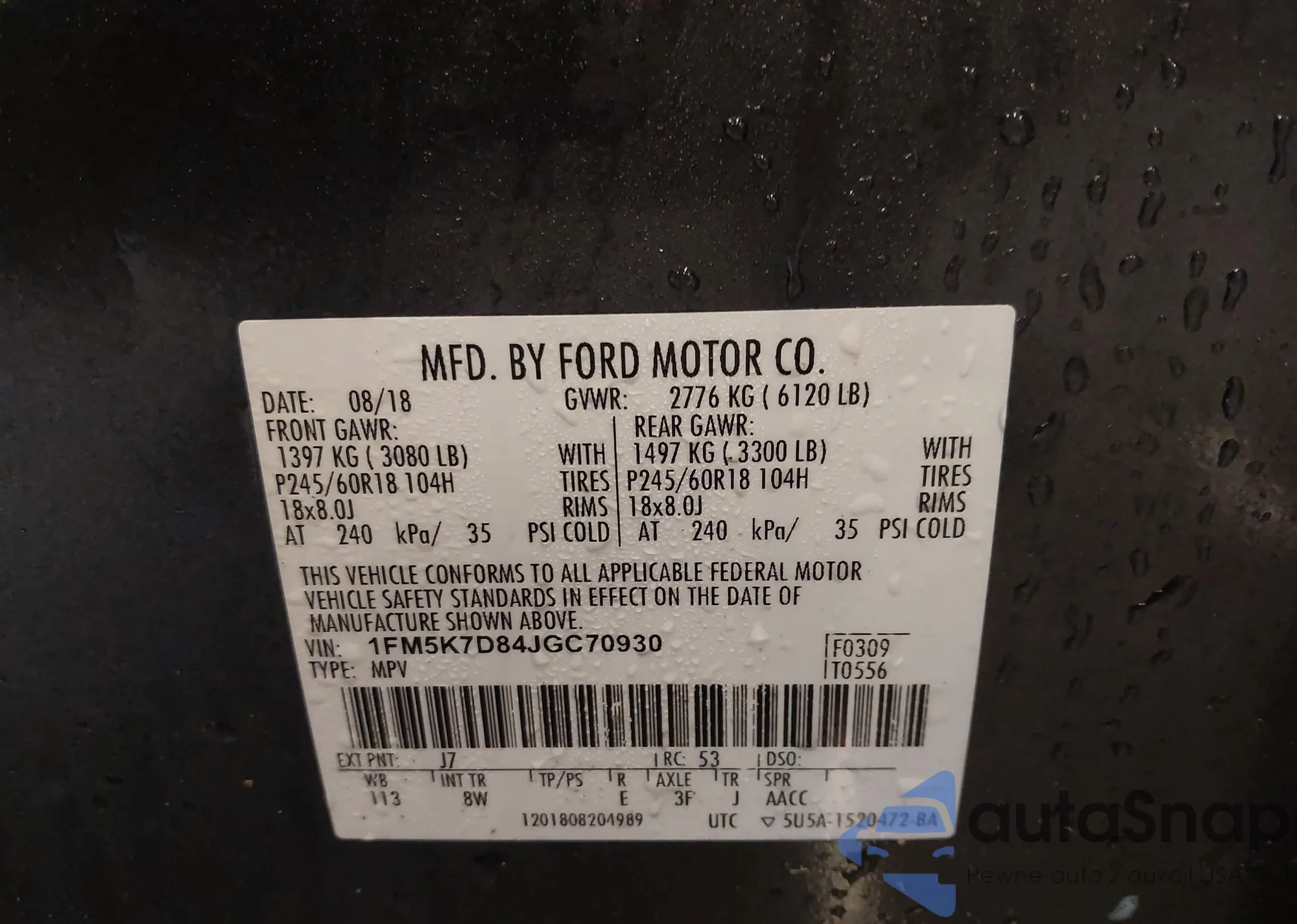 Автомобиль Ford Explorer 2018 (VIN 1FM5K7D84JGC70930) ранее не участвовал в торгах. Документы чистые, пробег соответствует или ниже среднего по рынку. Продаётся страховой компанией — рекомендуем покупку. Доставка в порт займет около 6–8 недель.