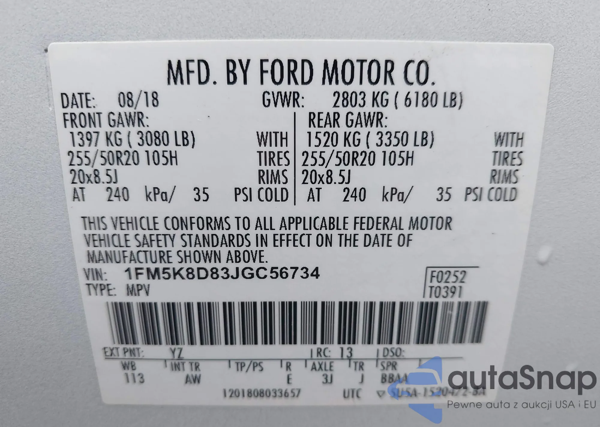 VIN: 1FM5K8D83JGC56734