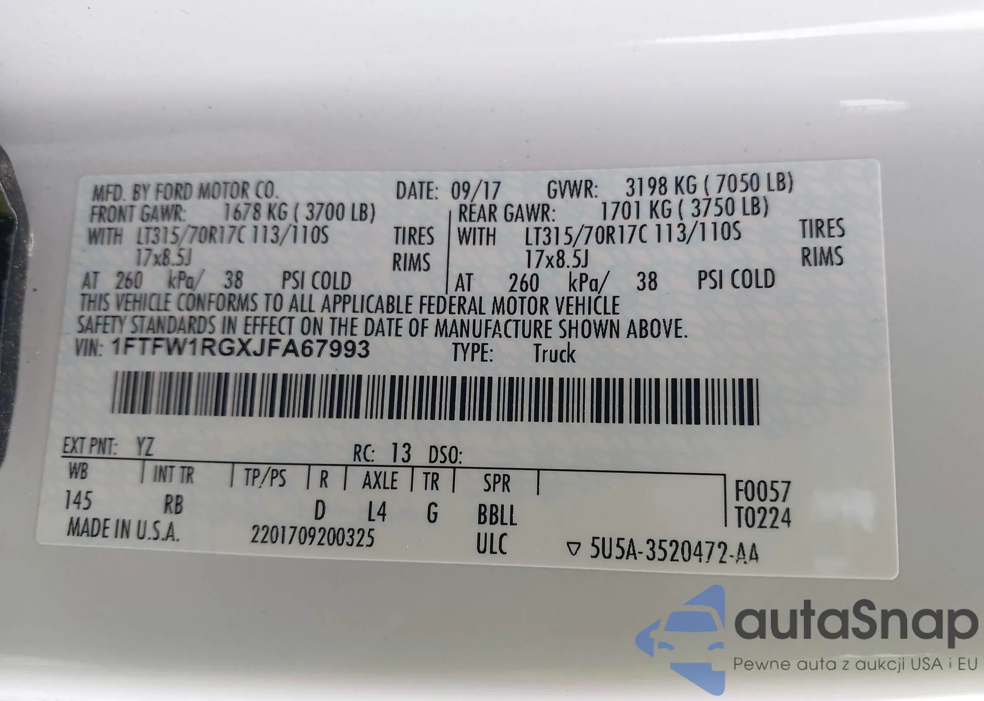 VIN: 1FTFW1RGXJFA67993