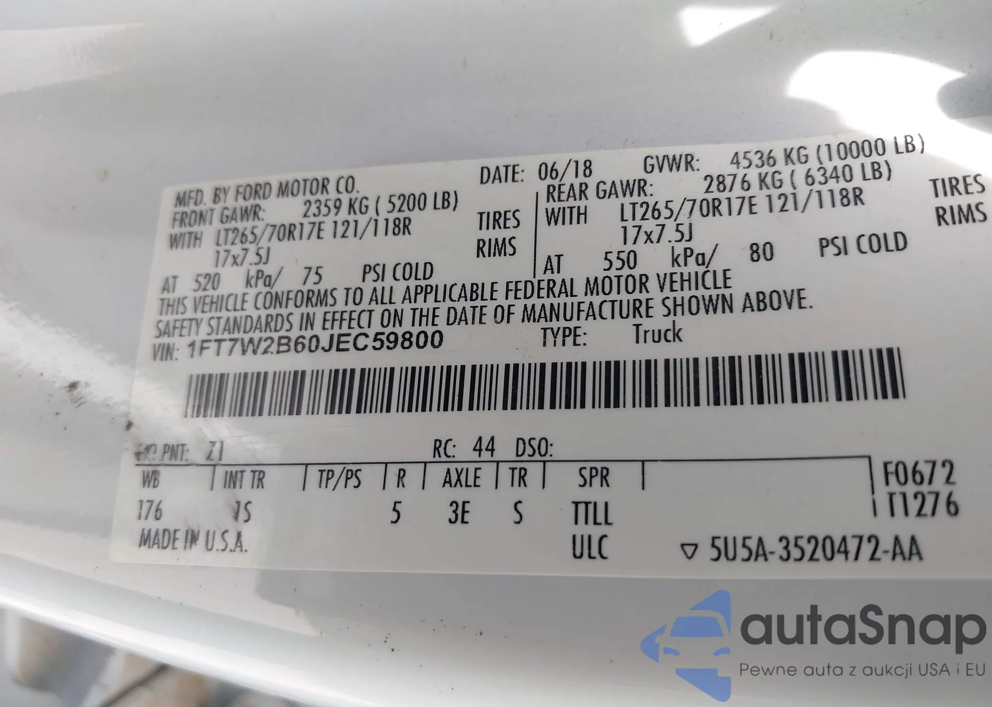 VIN: 1FT7W2B60JEC59800