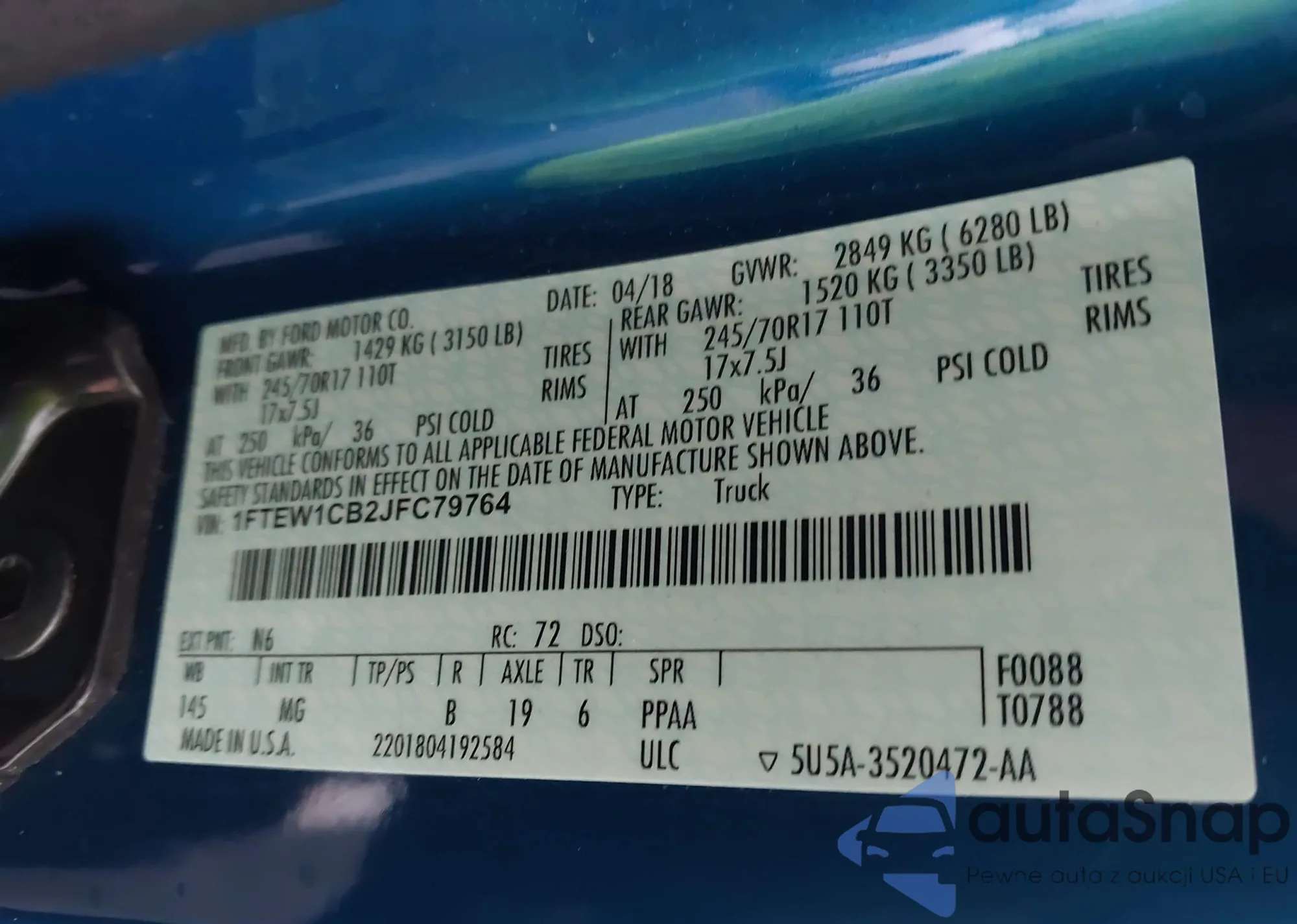 VIN: 1FTEW1CB2JFC79764