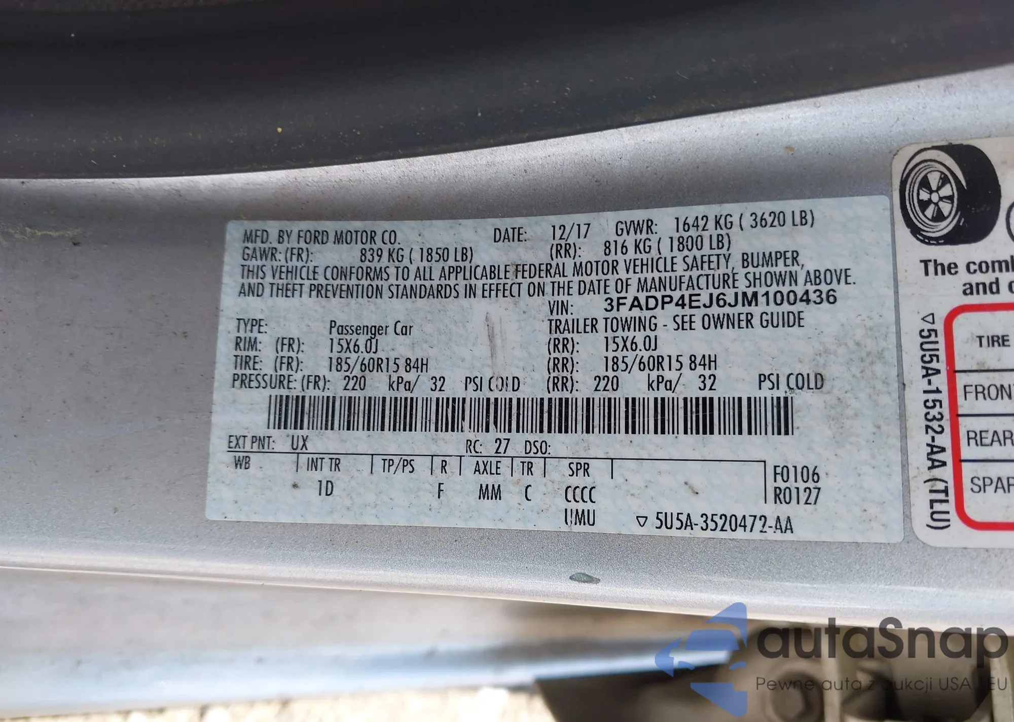VIN: 3FADP4EJ6JM100436
