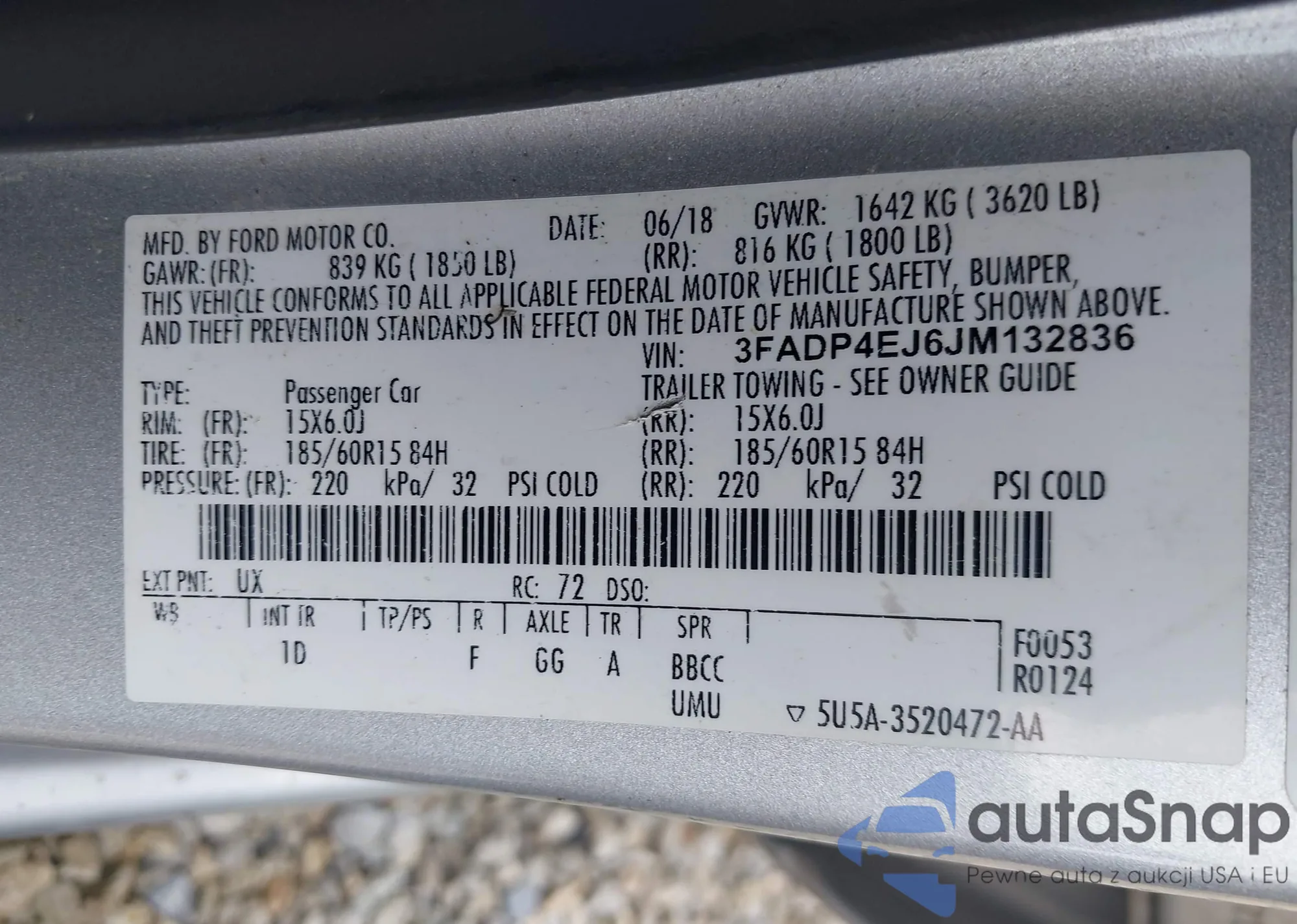 VIN: 3FADP4EJ6JM132836