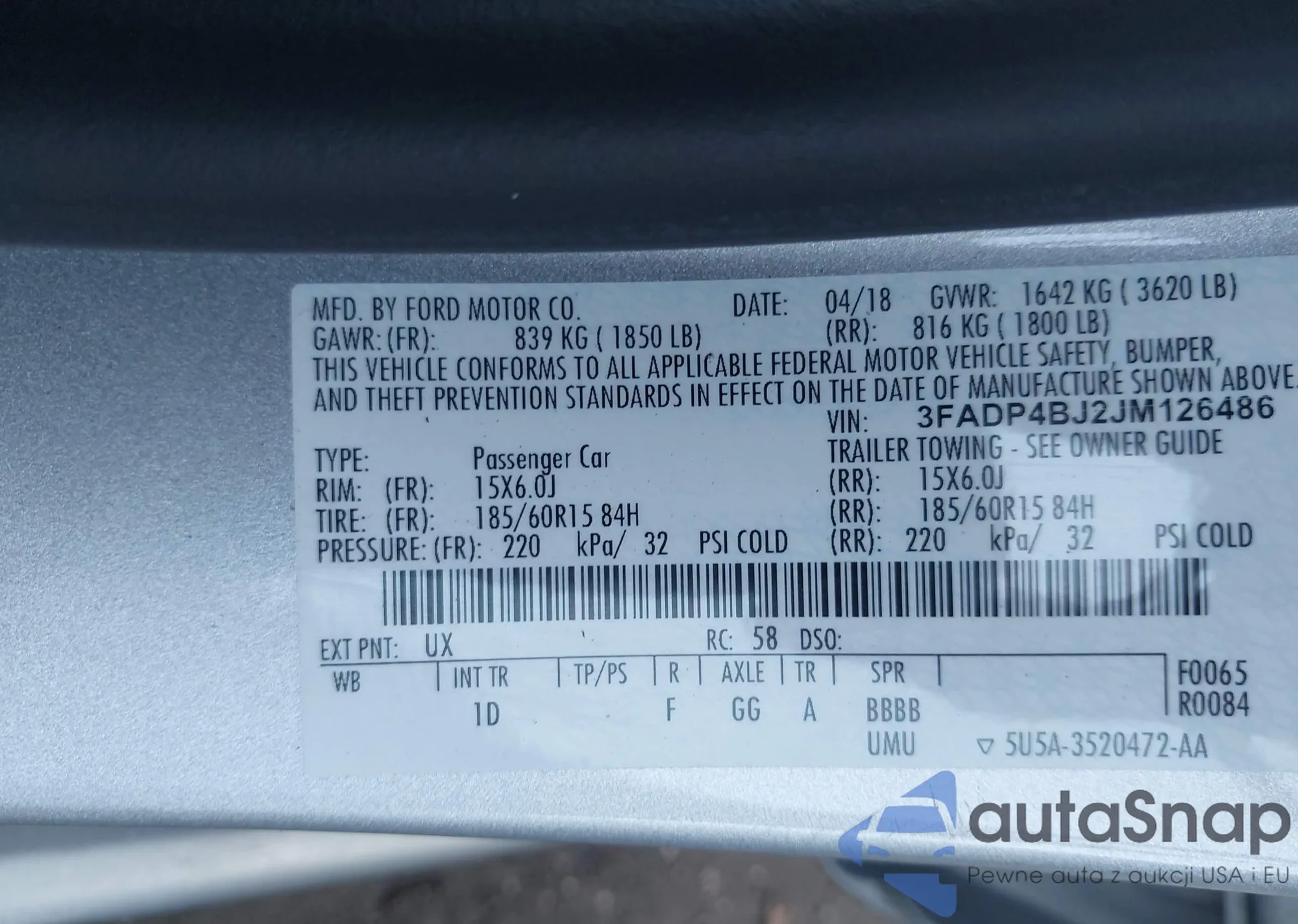 VIN: 3FADP4BJ2JM126486