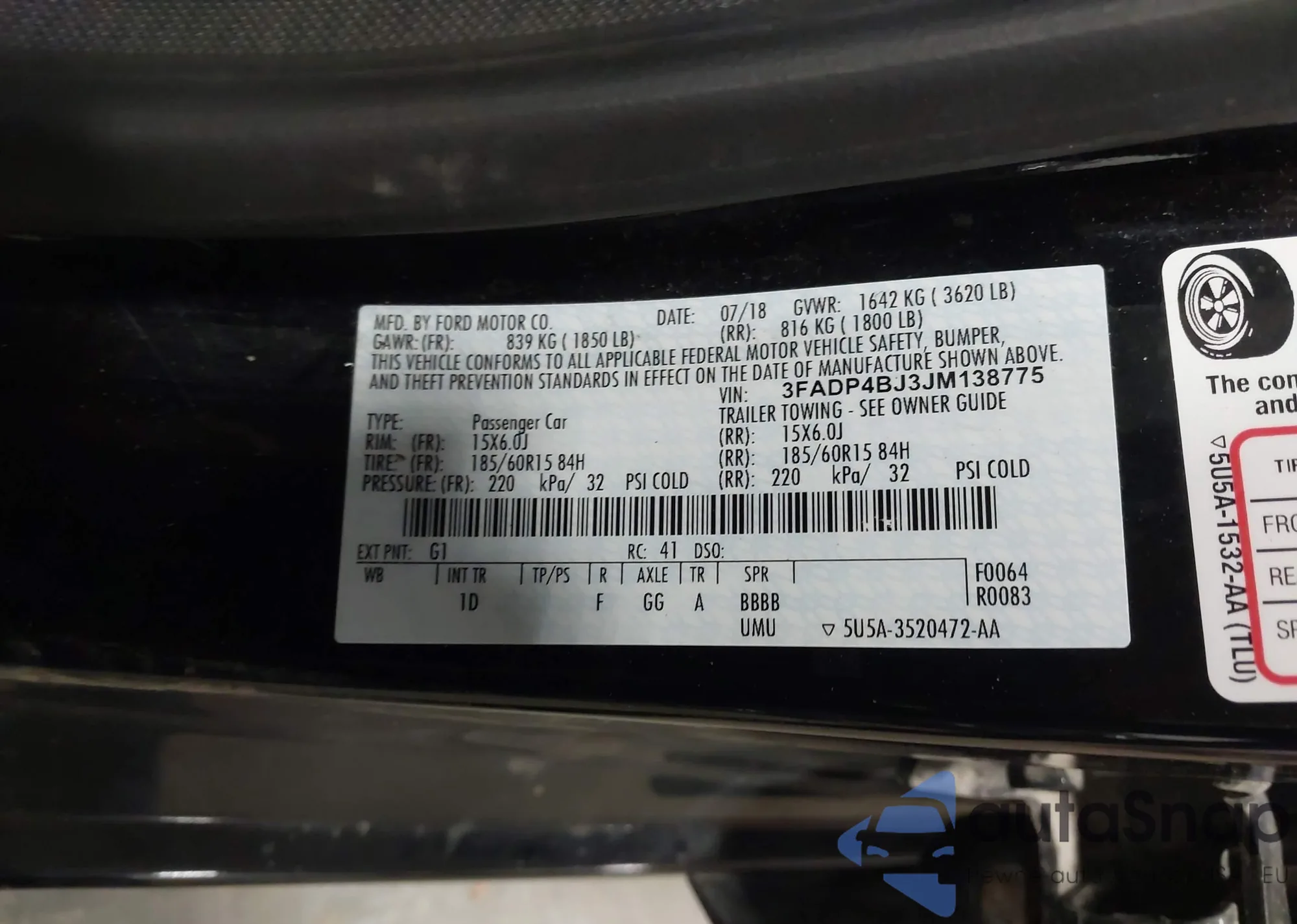 • VIN: 3FADP4BJ3JM138775