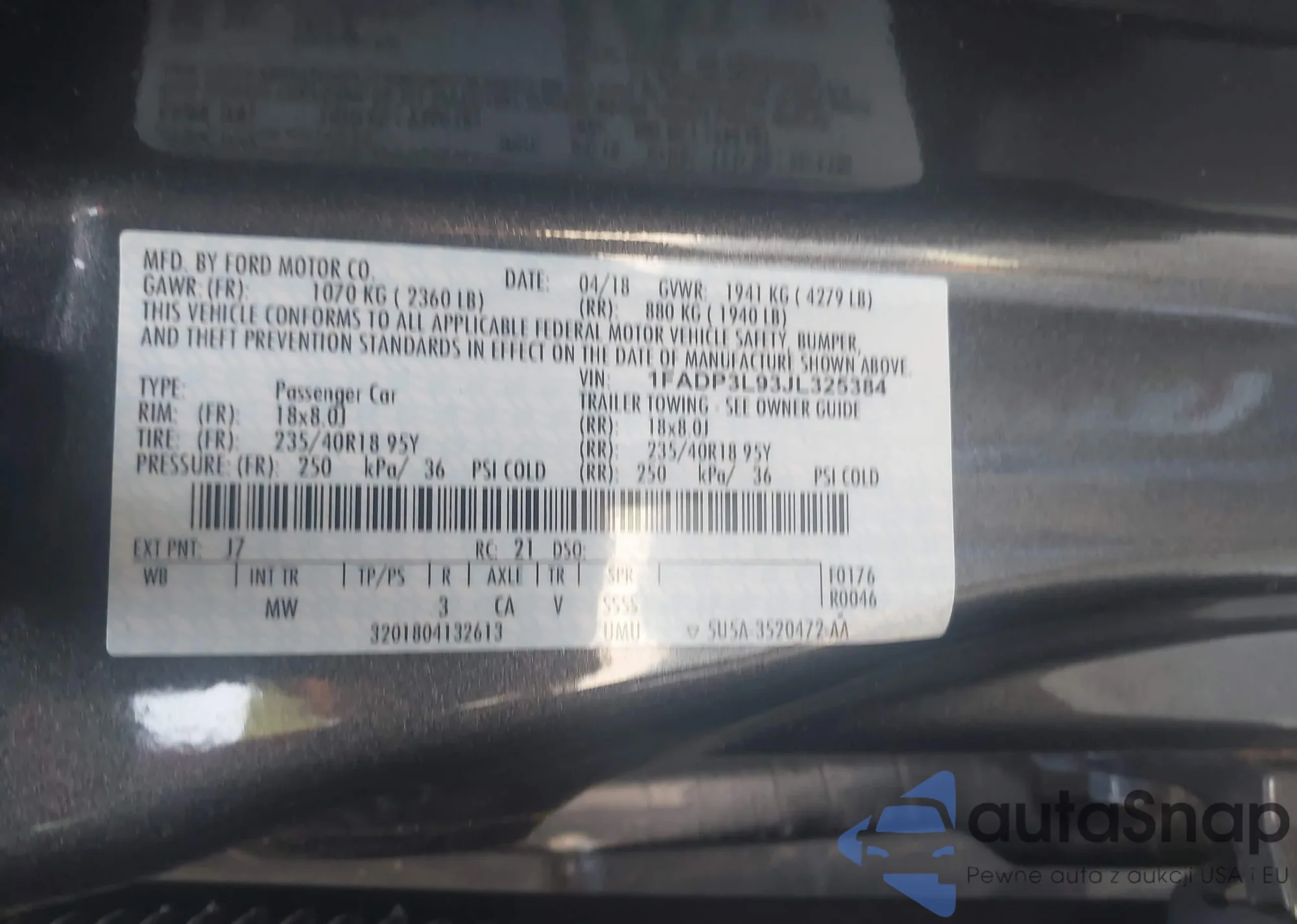 VIN: 1FADP3L93JL325384
