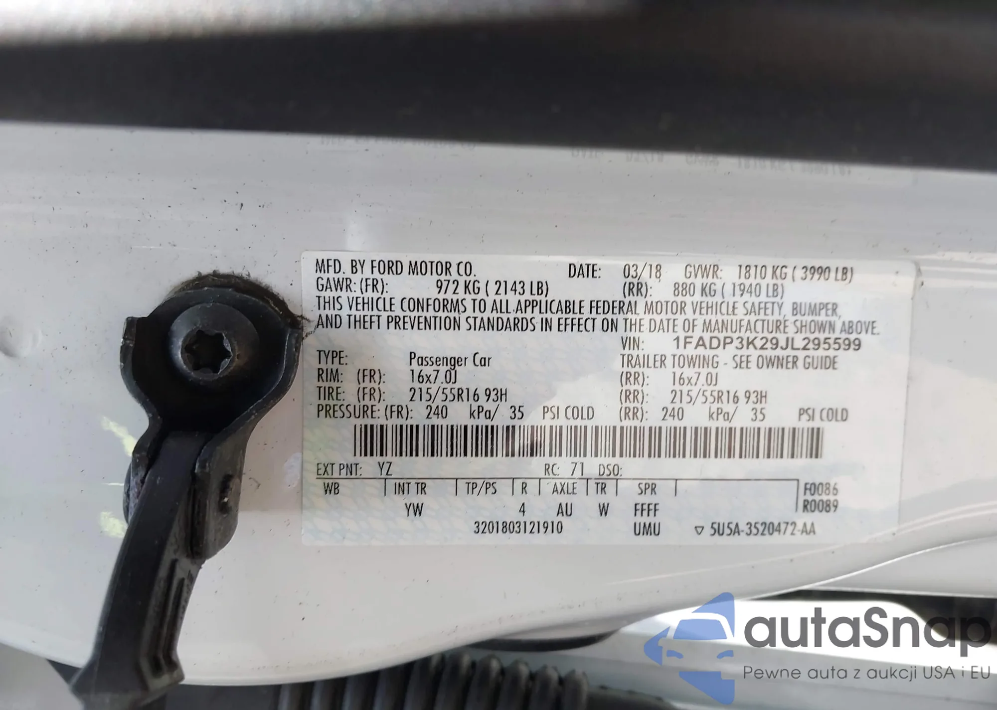 VIN: 1FADP3K29JL295599