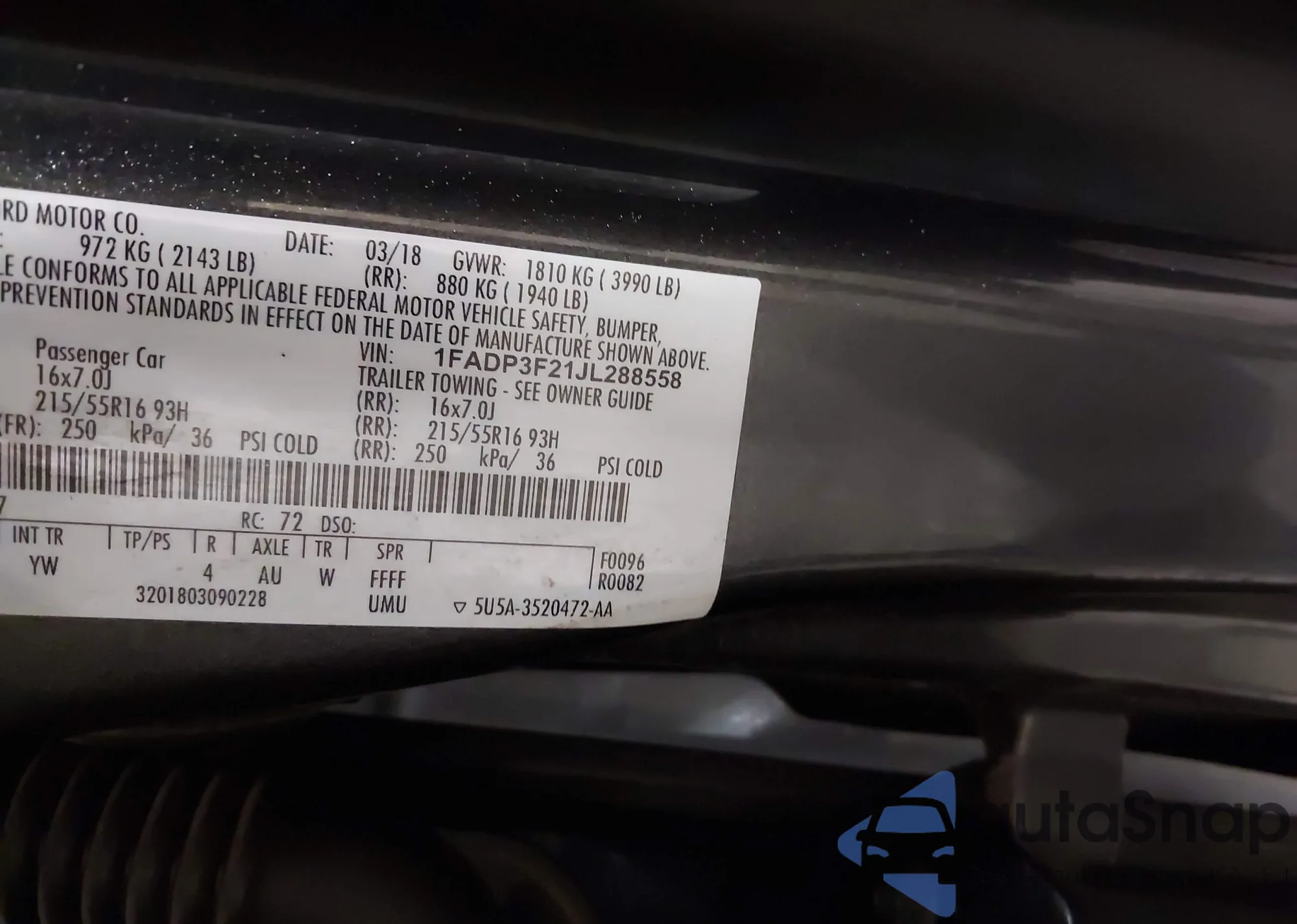VIN: 1FADP3F21JL288558