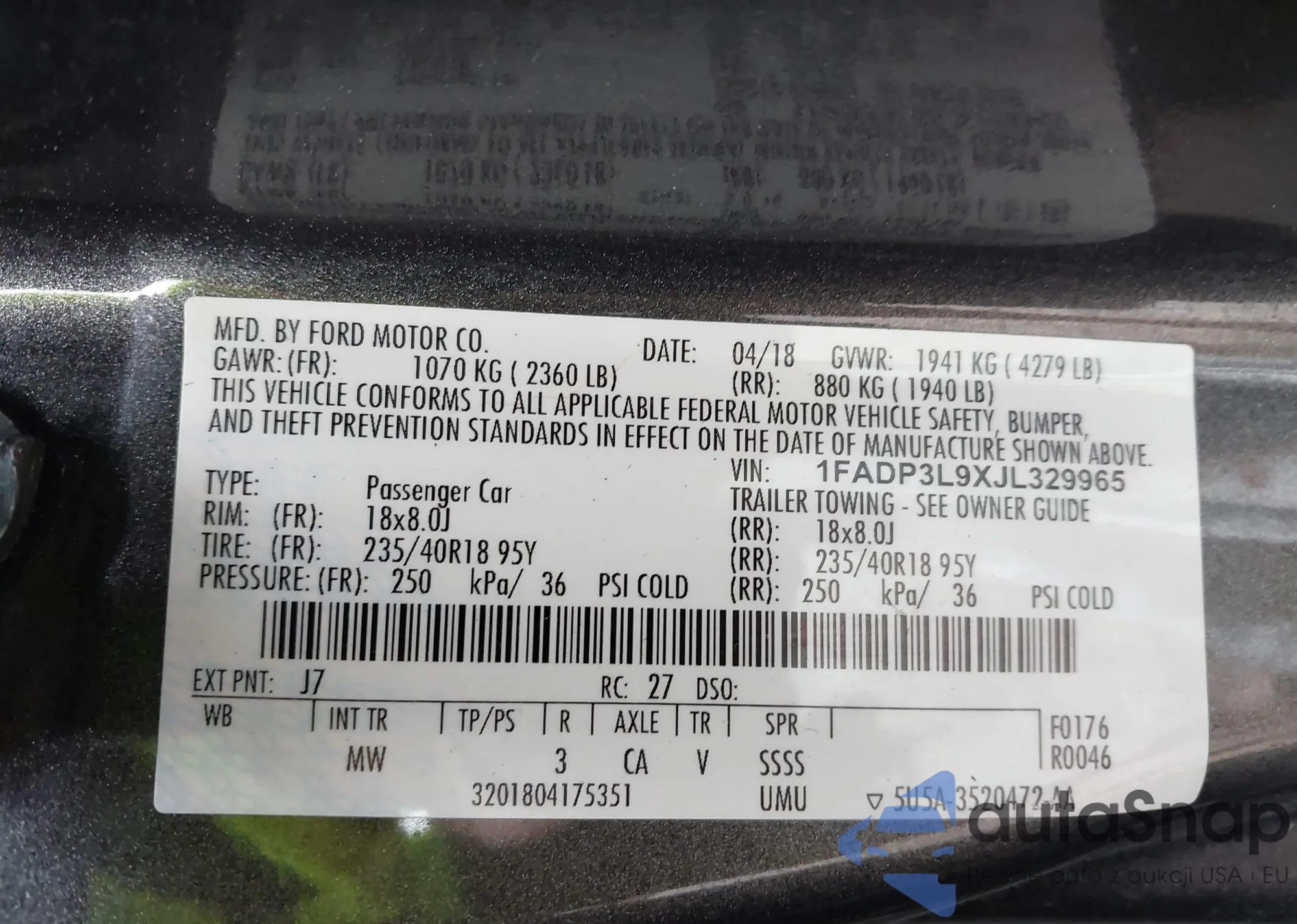 VIN: 1FADP3L9XJL329965
