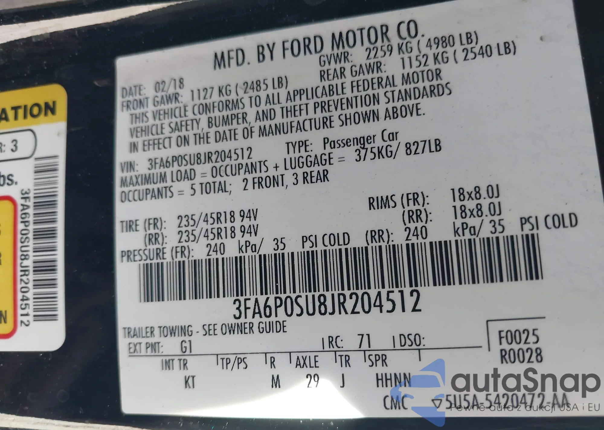 VIN: 3FA6P0SU8JR204512