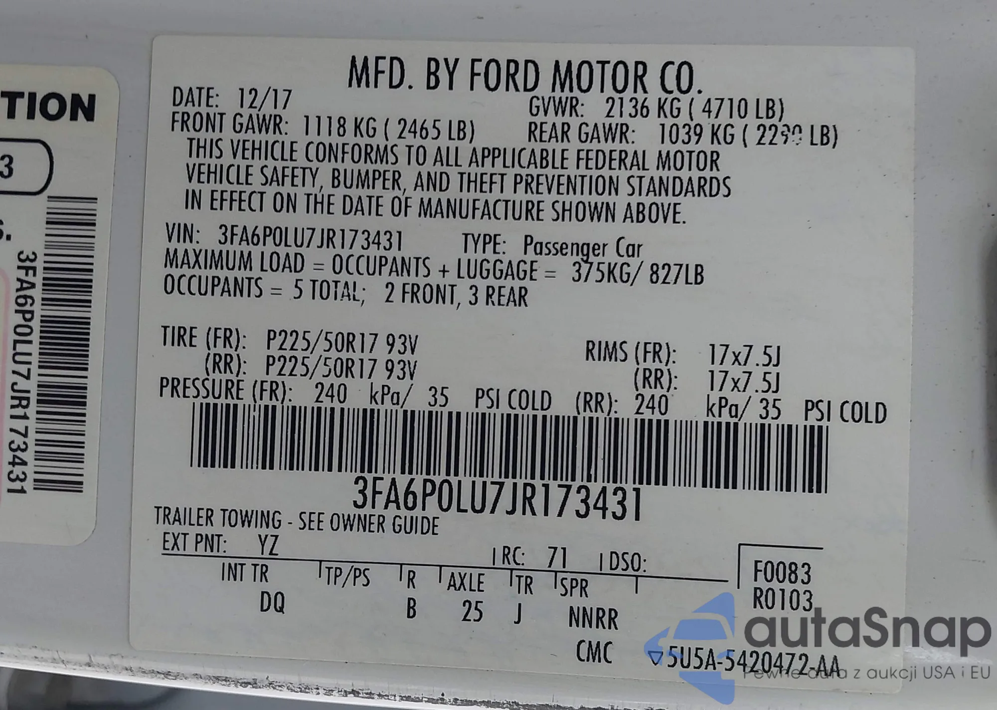 VIN: 3FA6P0LU7JR173431