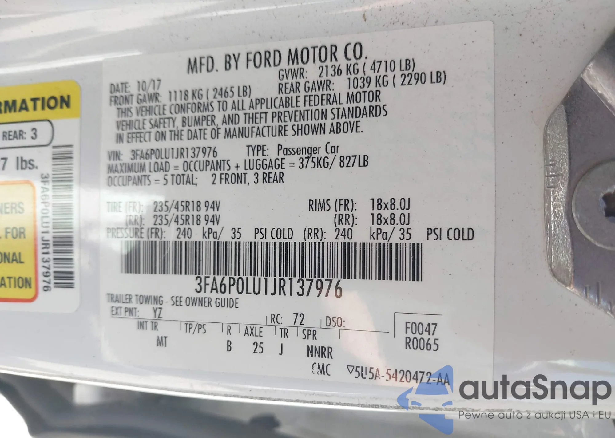 VIN: 3FA6P0LU1JR137976