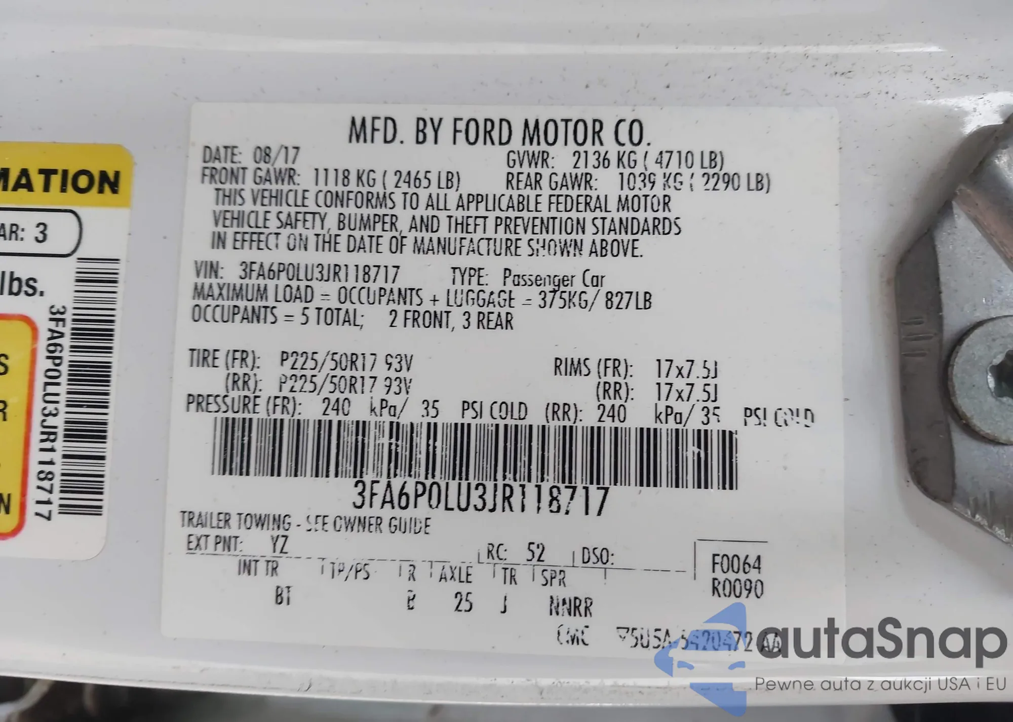 Автомобиль Ford Fusion 2018 (VIN 3FA6P0LU3JR118717) уже участвовал в торгах 1 раз(а) и/или продаётся непроверенным продавцом. Рекомендуем проверить отчет Carfax и подтвердить возможность регистрации перед покупкой.