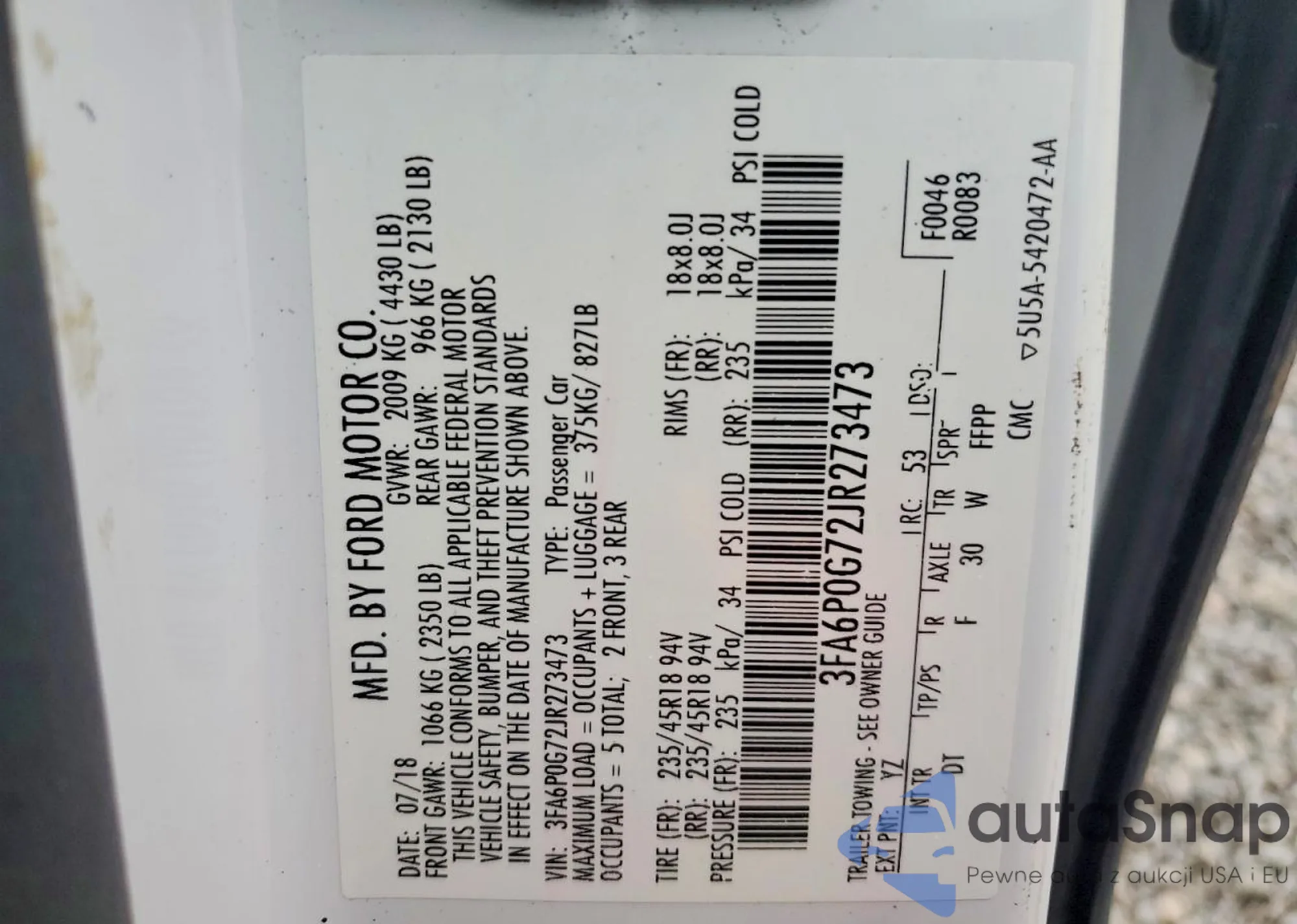 Автомобиль Ford Fusion 2018 (VIN 3FA6P0G72JR273473) ранее не участвовал в торгах. Документы чистые, пробег соответствует или ниже среднего по рынку. Продаётся страховой компанией — рекомендуем покупку. Доставка в порт займет около 6–8 недель.