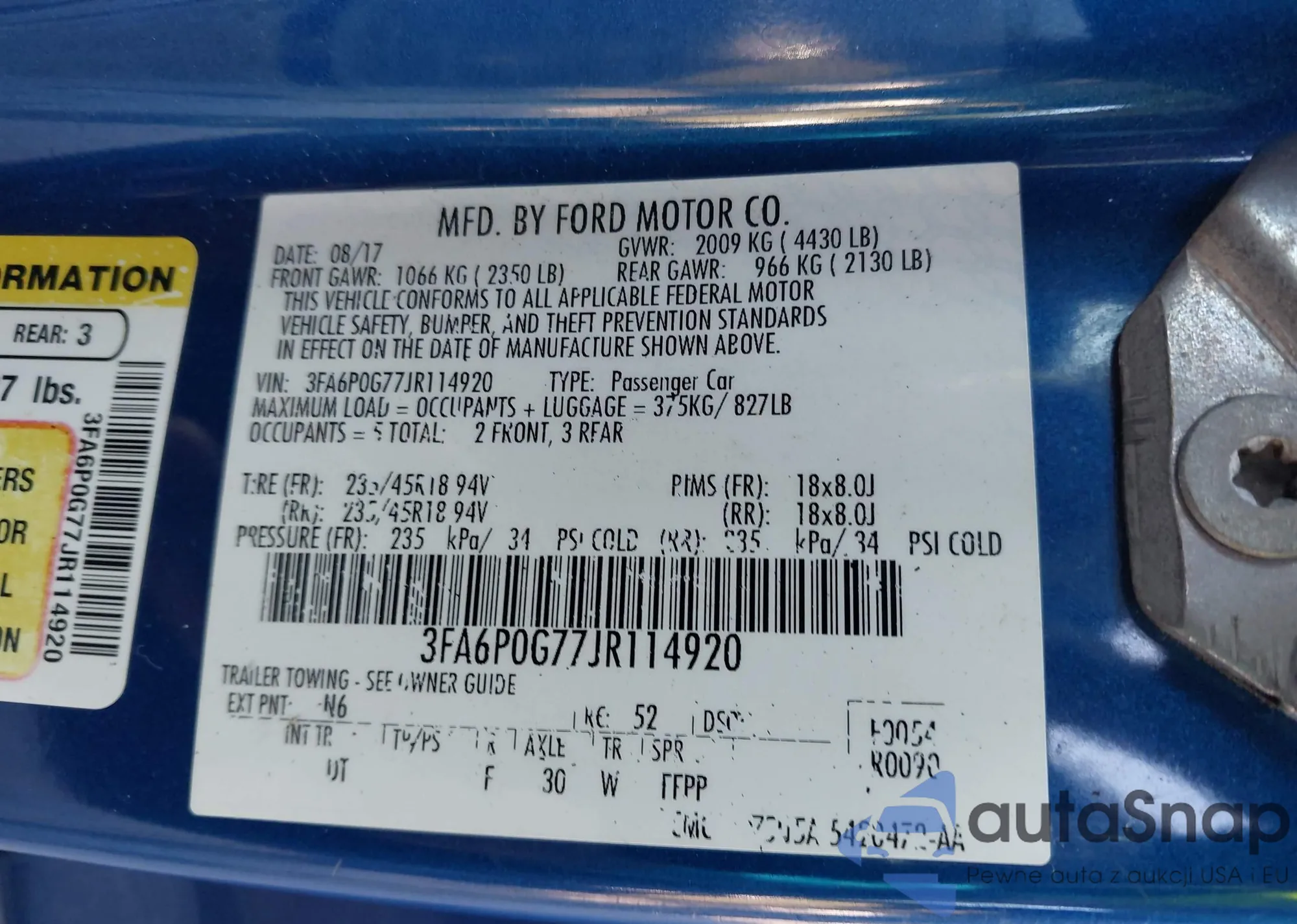 VIN: 3FA6P0G77JR114920