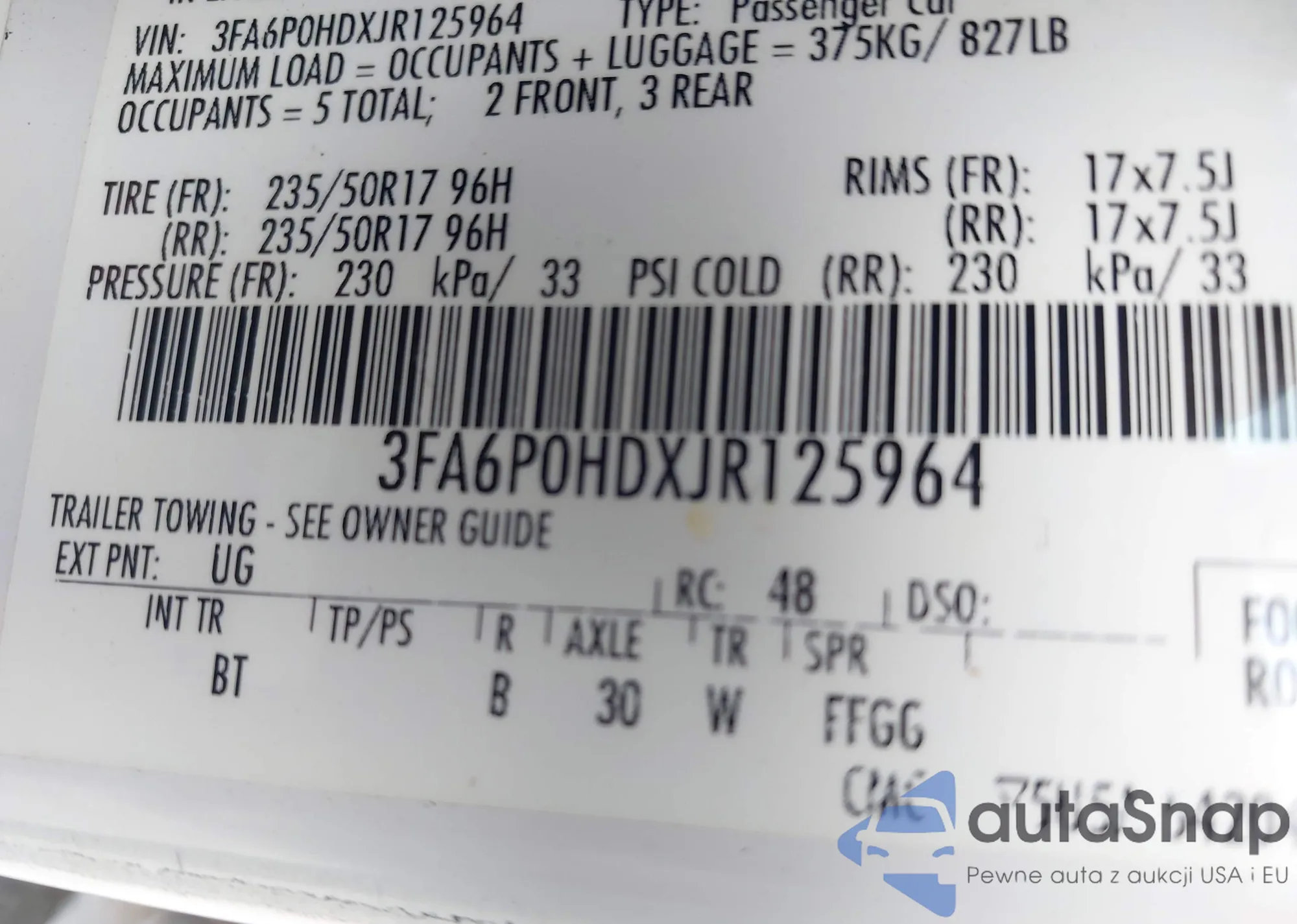 VIN: 3FA6P0HDXJR125964
