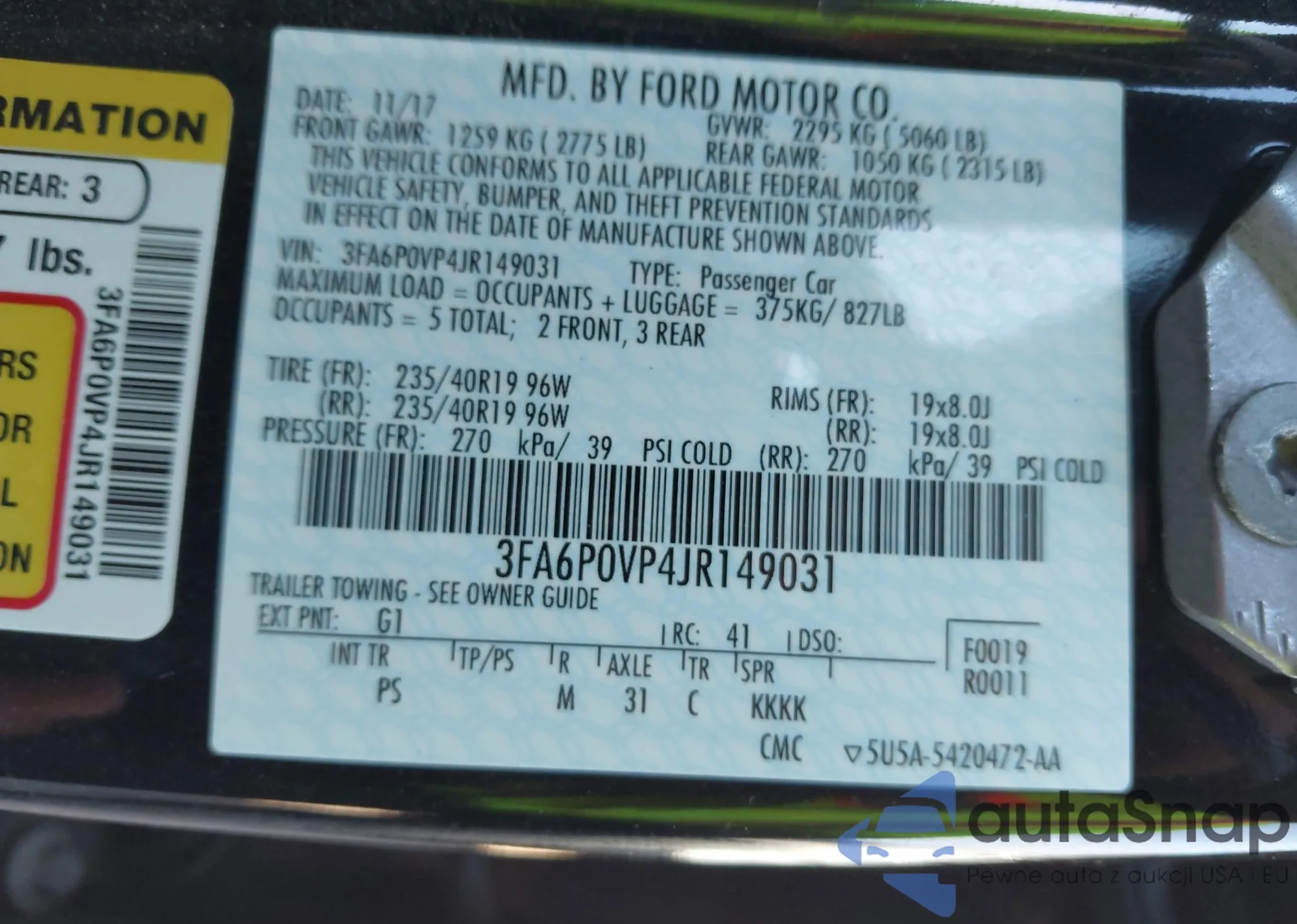 VIN: 3FA6P0VP4JR149031