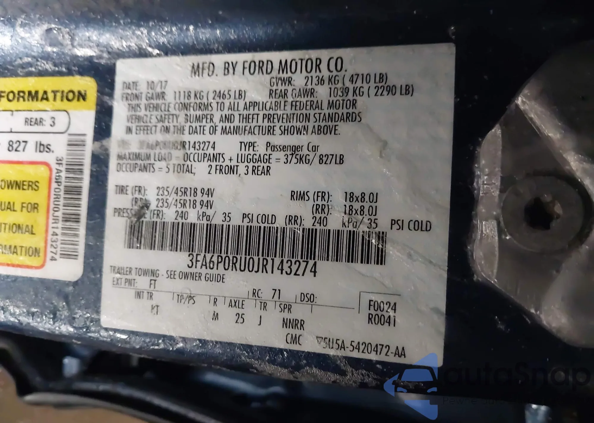 VIN: 3FA6P0RU0JR143274