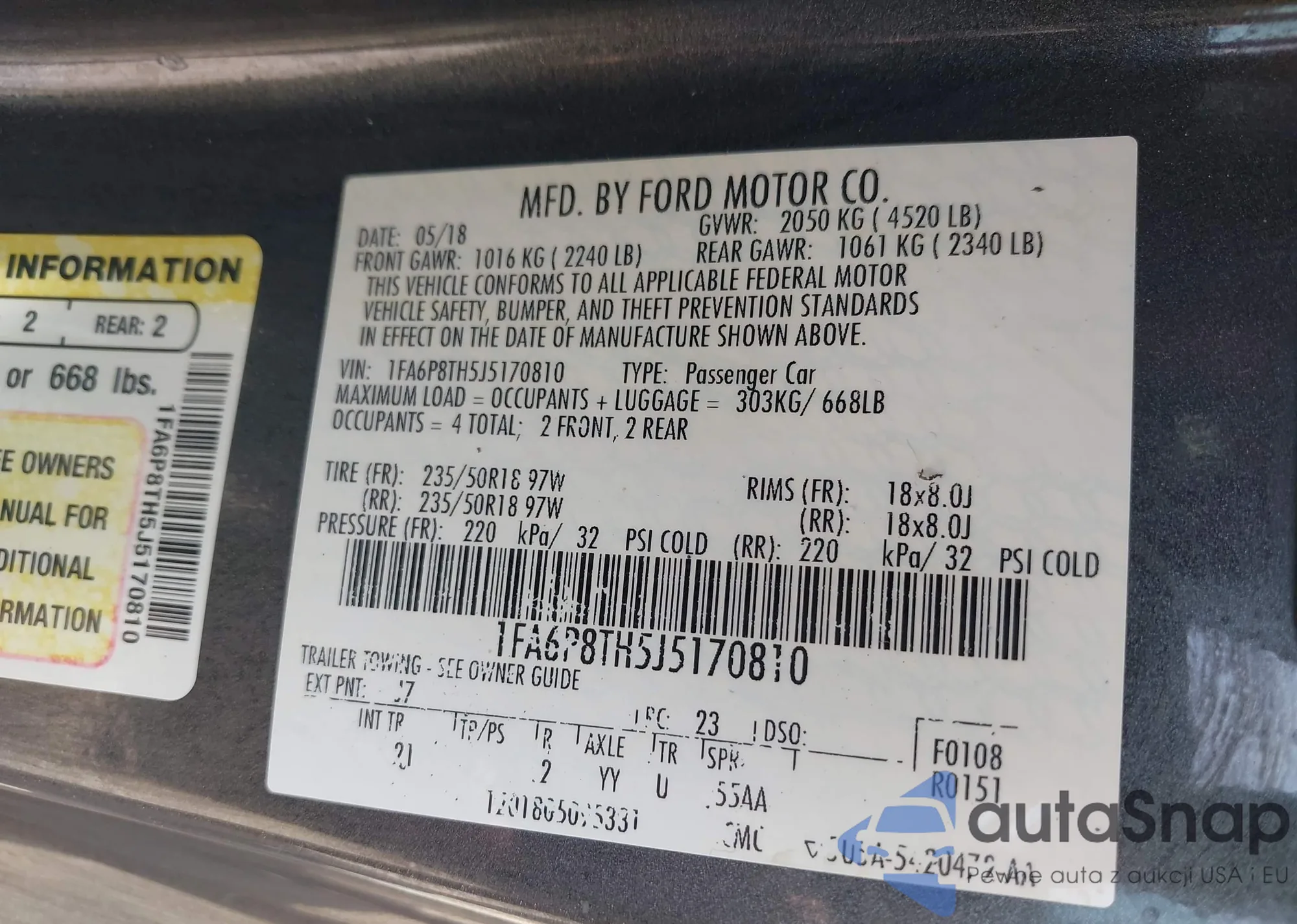 VIN: 1FA6P8TH5J5170810