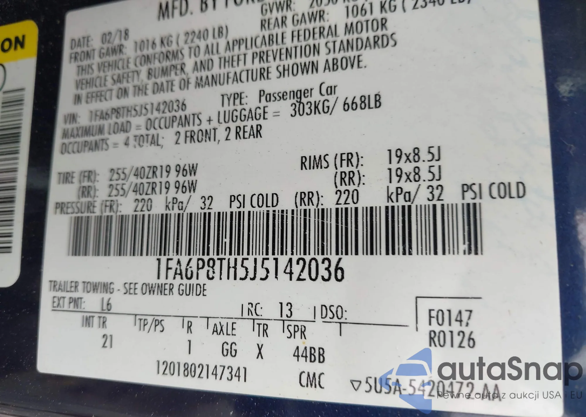 VIN: 1FA6P8TH5J5142036
