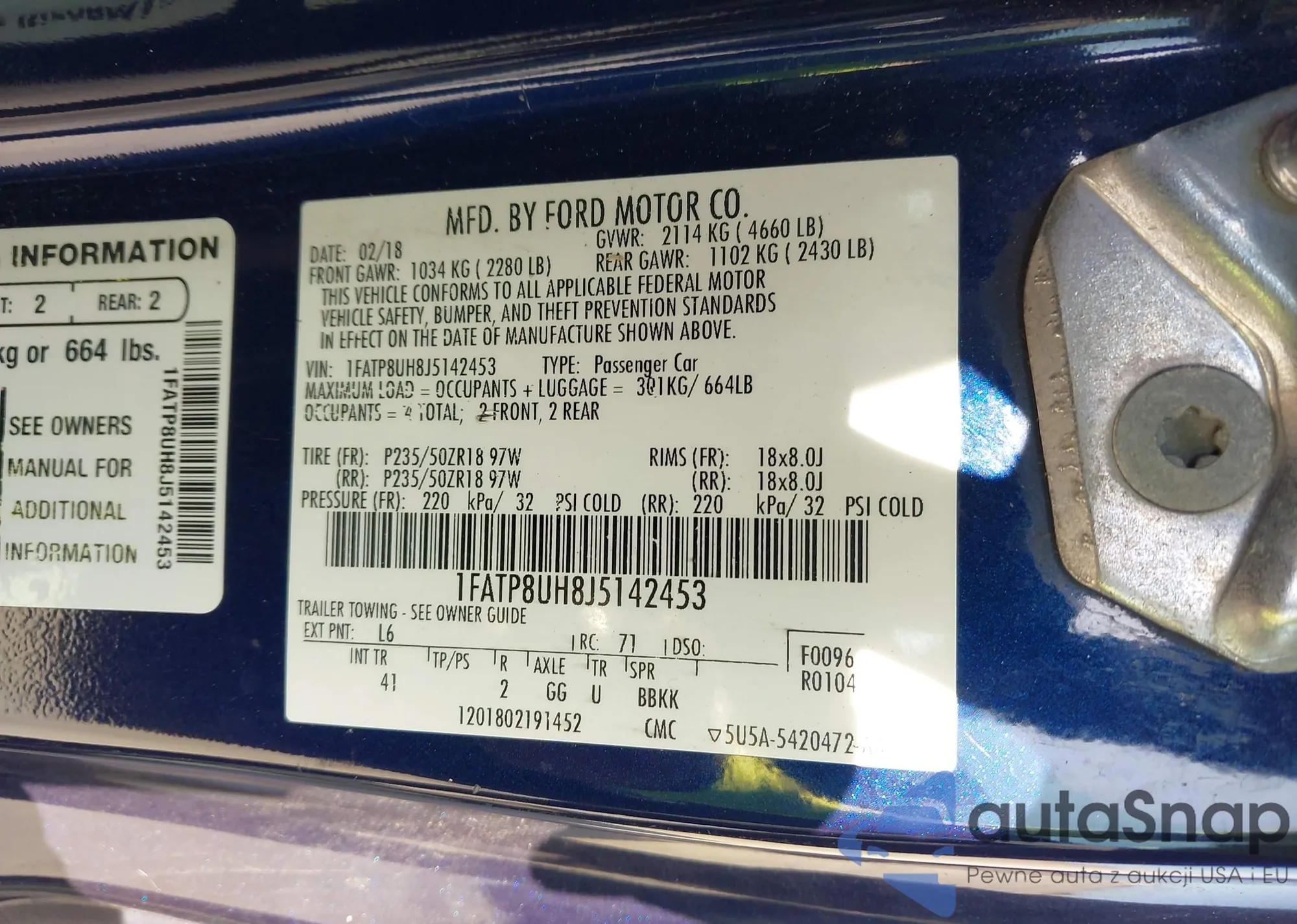 • VIN: 1FATP8UH8J5142453