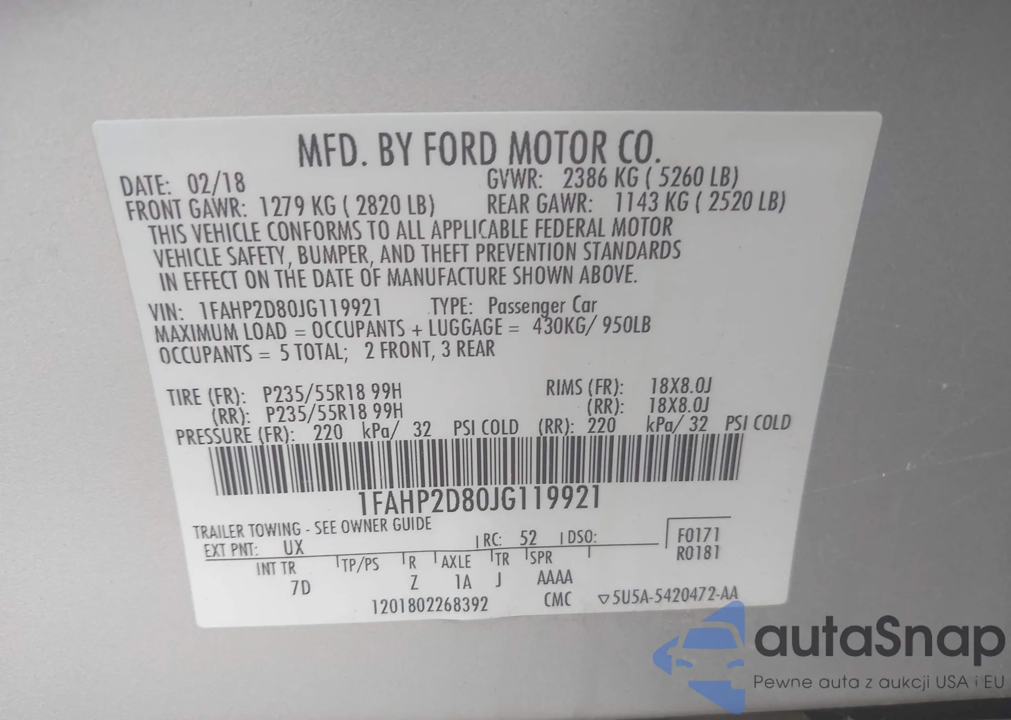 VIN: 1FAHP2D80JG119921