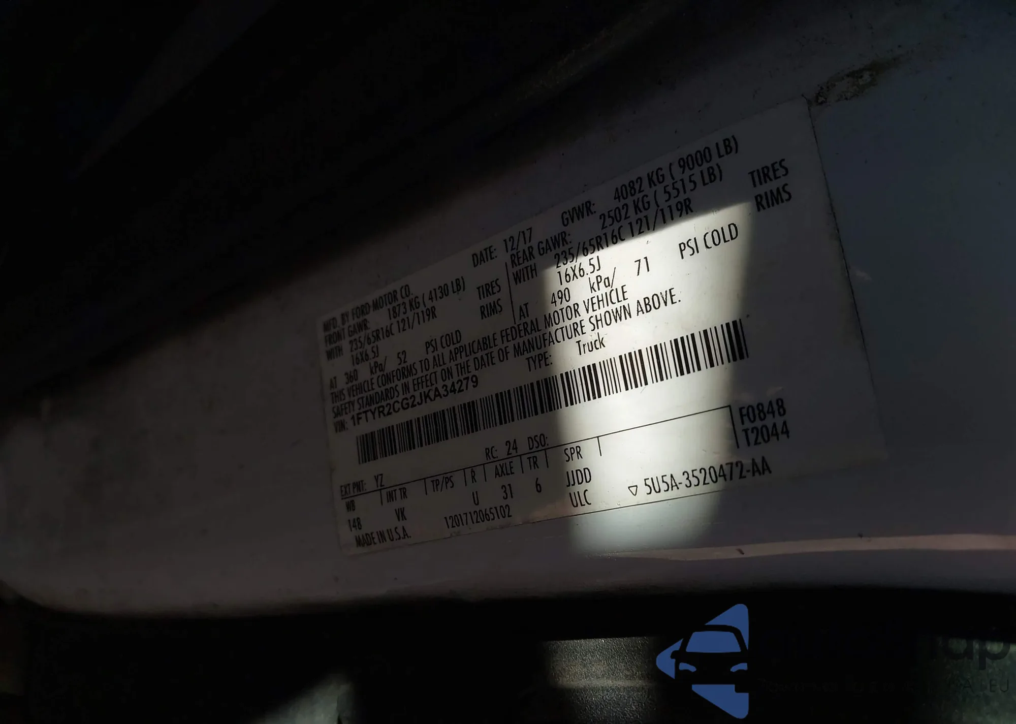 VIN: 1FTYR2CG2JKA34279