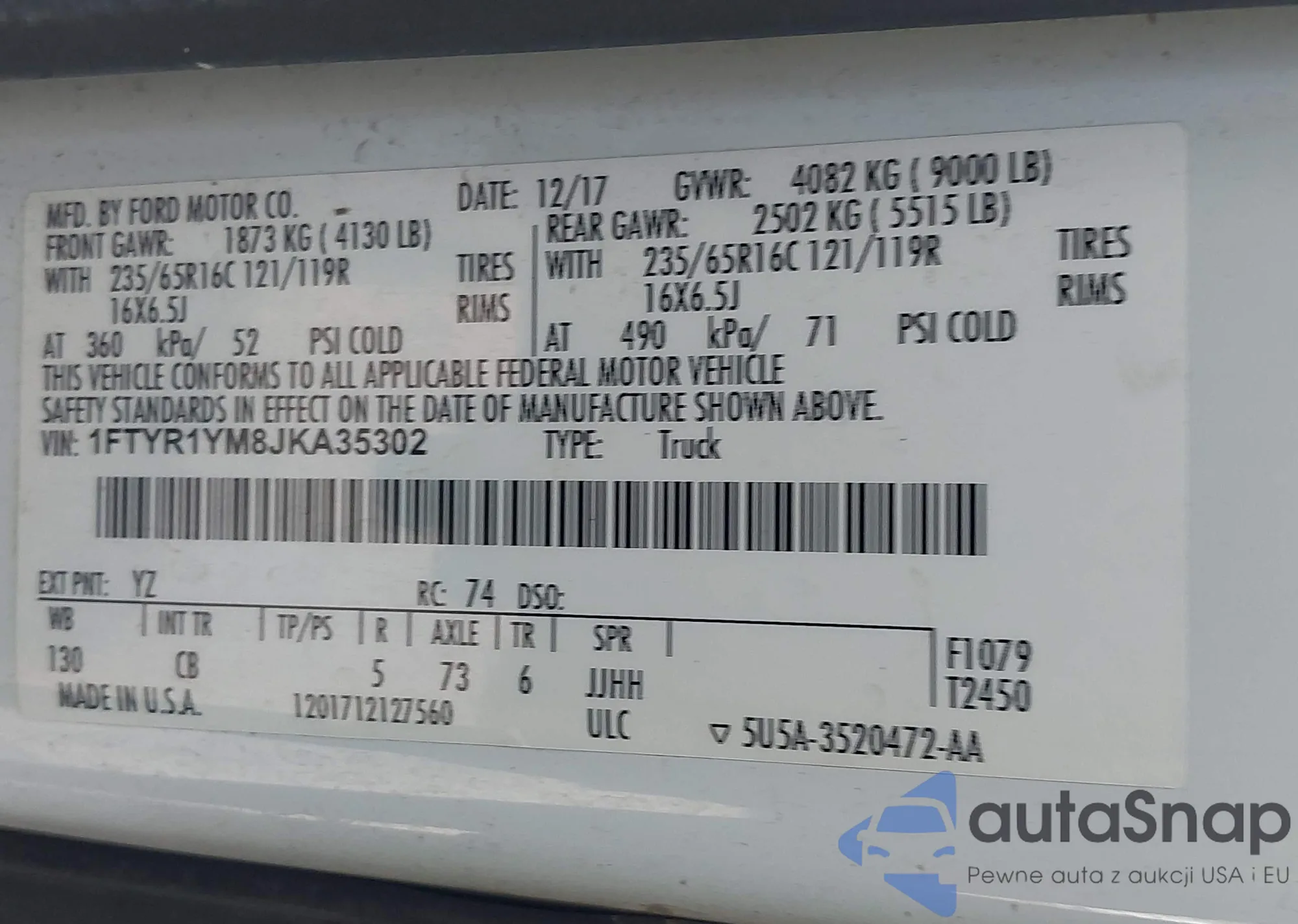 VIN: 1FTYR1YM8JKA35302