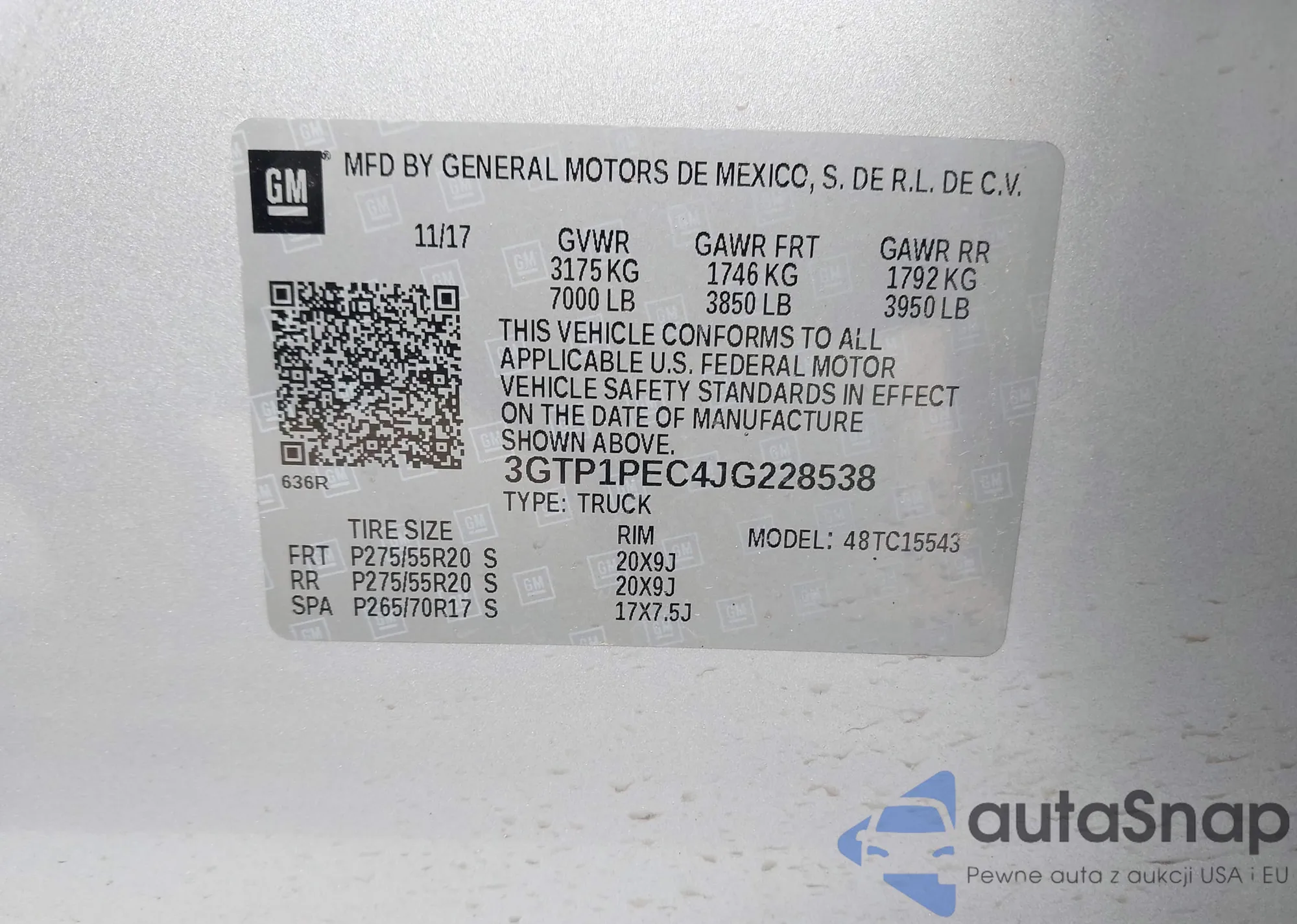 • VIN: 3GTP1PEC4JG228538