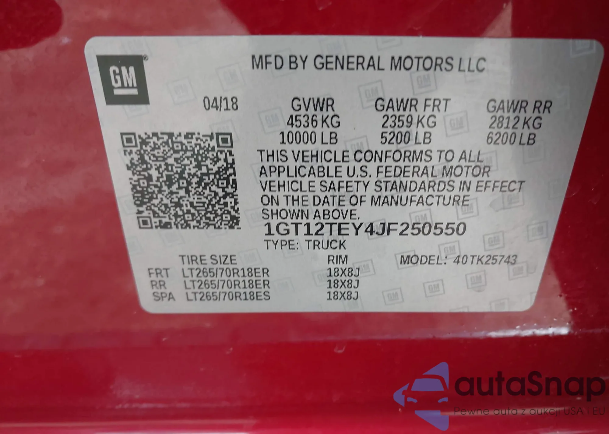 VIN: 1GT12TEY4JF250550