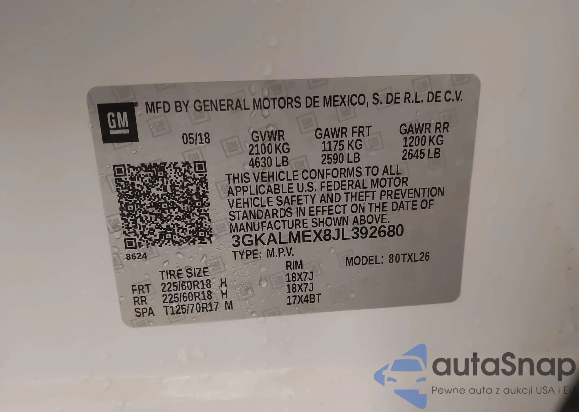 VIN: 3GKALMEX8JL392680